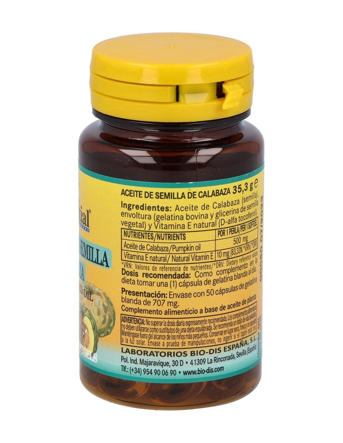 El Aceite De Semillas De Calabaza 500Mg. 50Perlas de Nature Essential está diseñado para personas que buscan complementar su dieta con un producto natural derivado de semillas de calabaza. Este suplemento en perlas facilita su consumo diario, adaptándose a quienes prefieren una presentación práctica y dosificada.