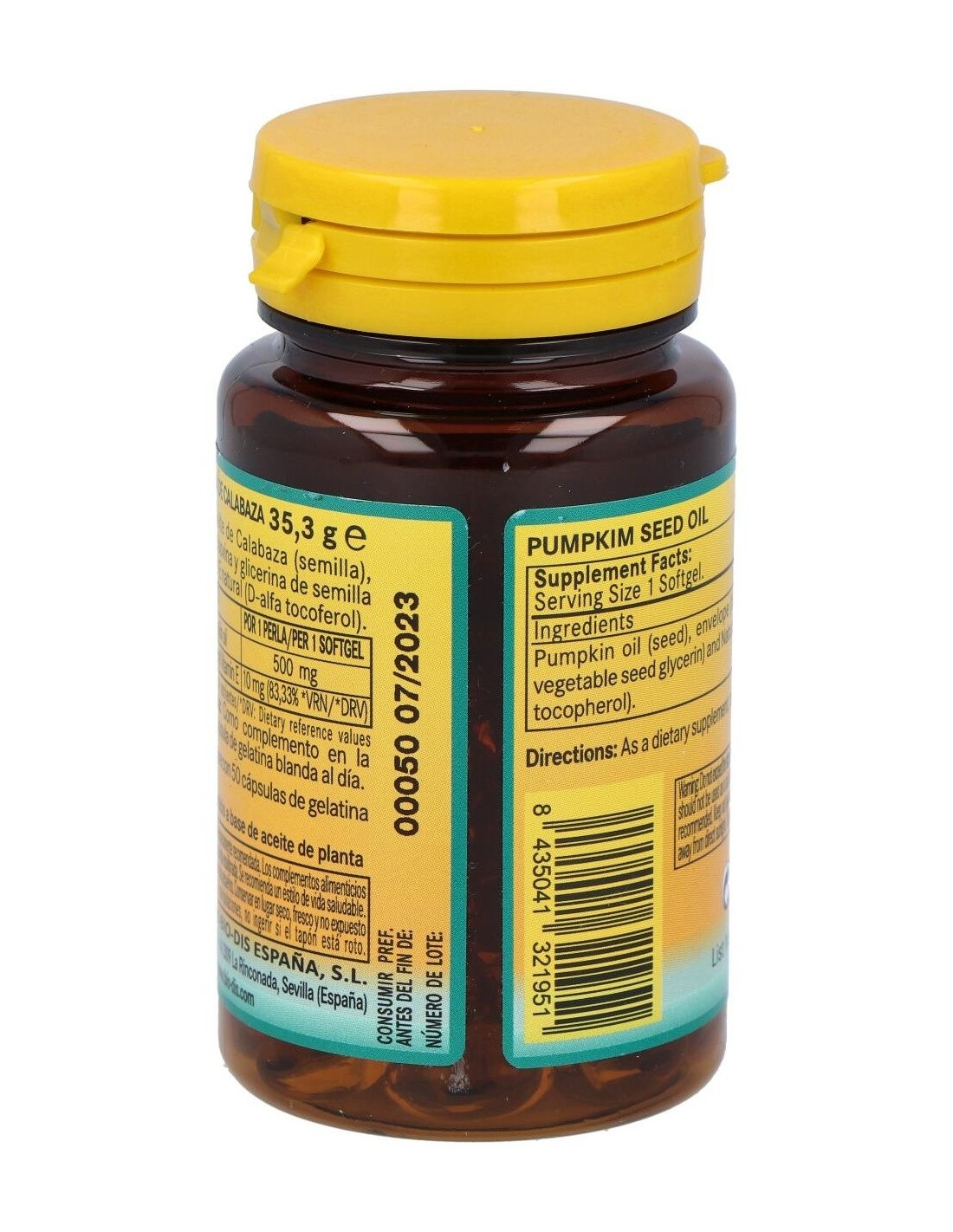 - Cada perla contiene 500 mg de aceite de semillas de calabaza, proporcionando una fuente concentrada de sus componentes naturales.