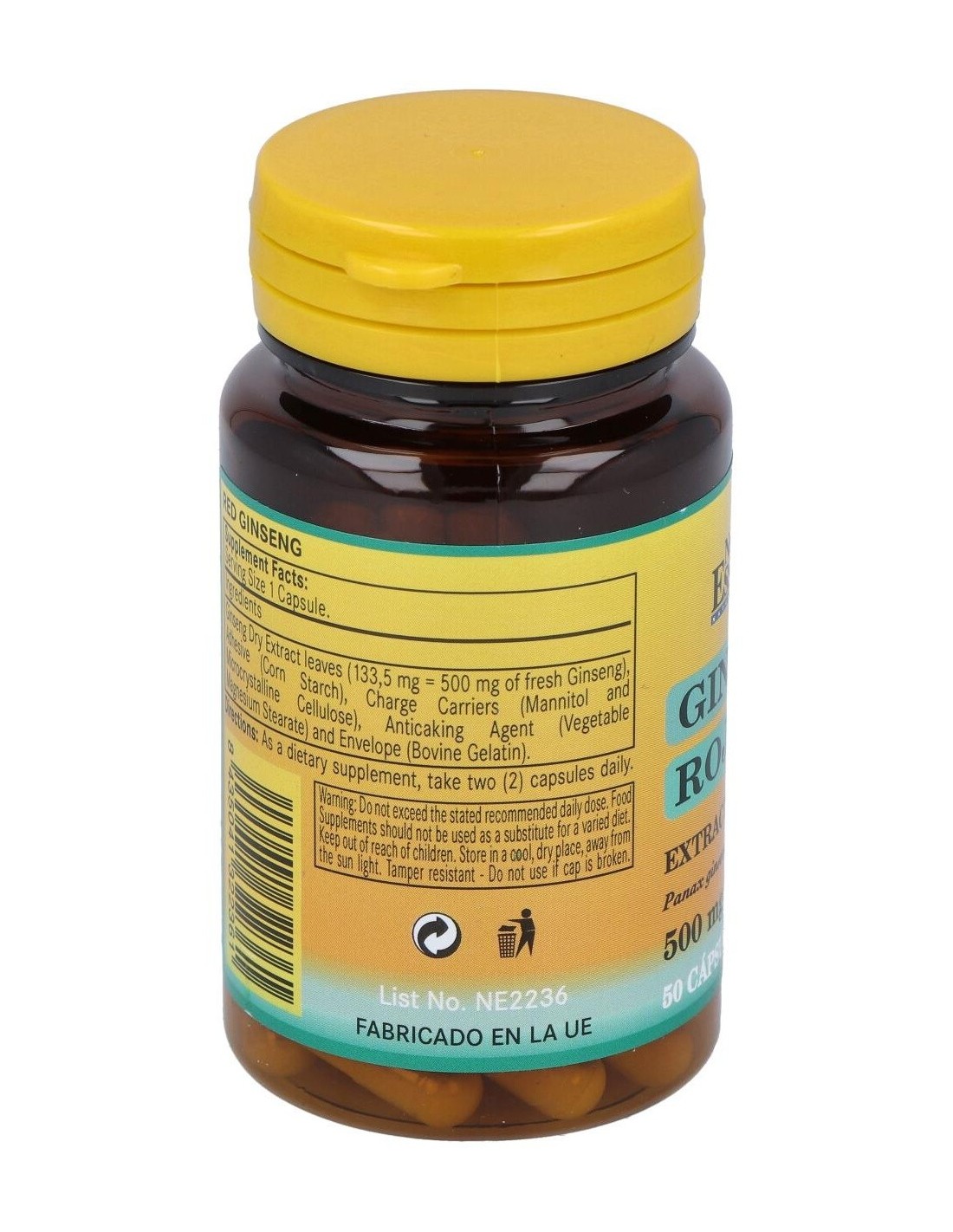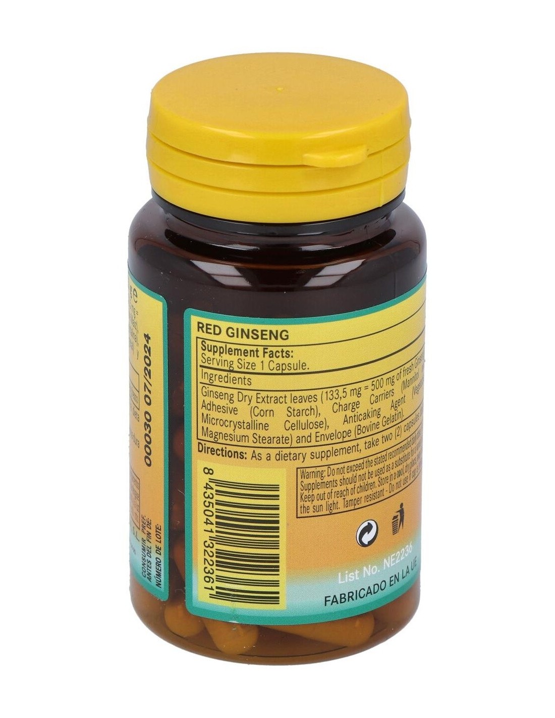 - Cada cápsula contiene 500 mg de extracto de ginseng rojo, facilitando una dosificación práctica y constante.