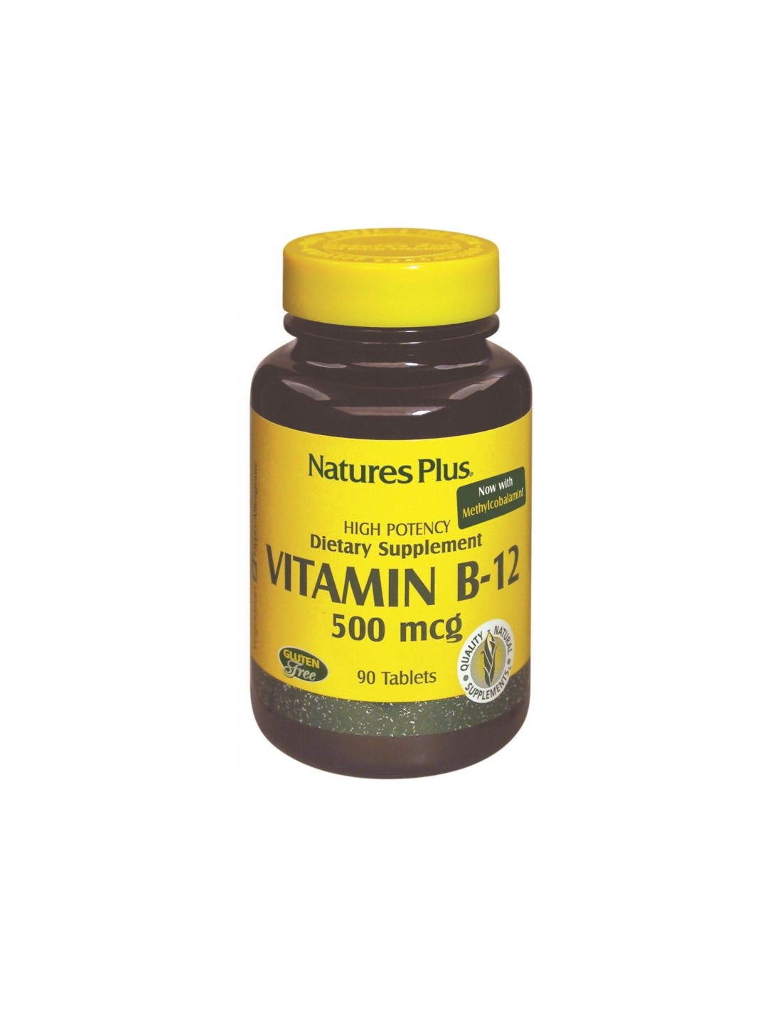NATURES PLUS1 comprimido al día. La dosis de 500 µg puede ayudar a cubrir las necesidades diarias de adultos con dietas deficientes, vegetarianos, personas con aclorhidria y tercera edad