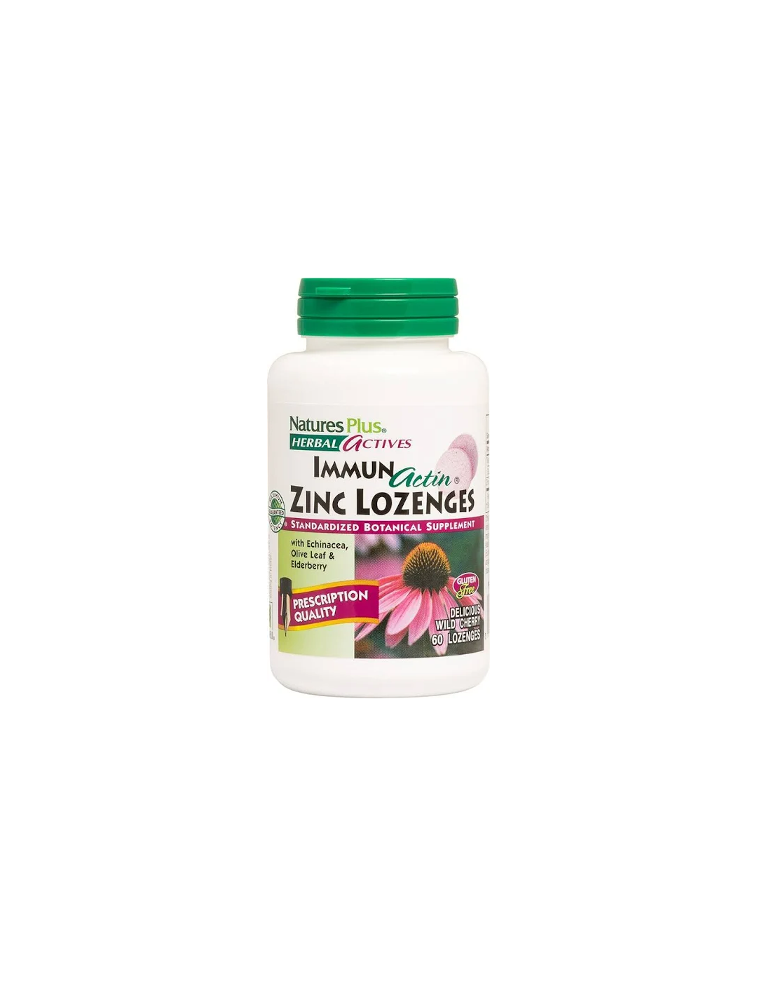 NATURES PLUSImmunactin Zinc Lozenges 60 Comp de Natures Plus es un suplemento diseñado para personas que buscan apoyar su sistema inmunológico, ofreciendo zinc en forma de pastillas para una administración práctica y dosificada.