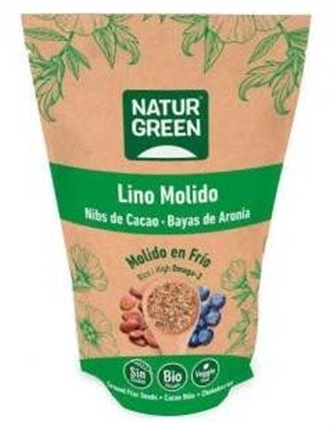 NATURGREENSemillas de lino marrón molido con cacao y aronia. Su textura ligeramente crujiente las convierte en un producto idóneo para recetas tanto dulces como saladas.