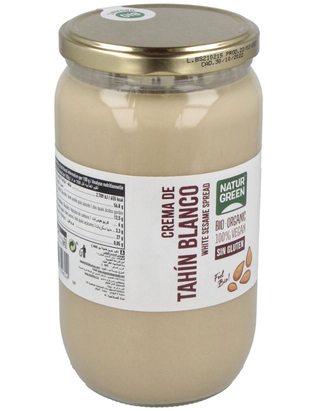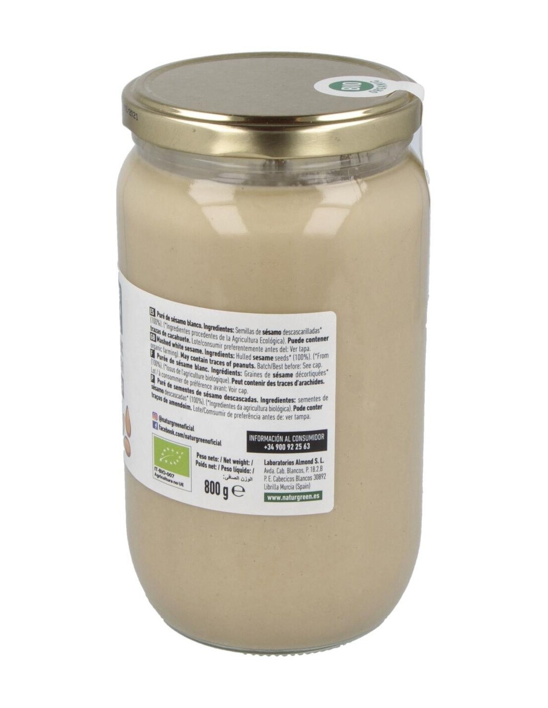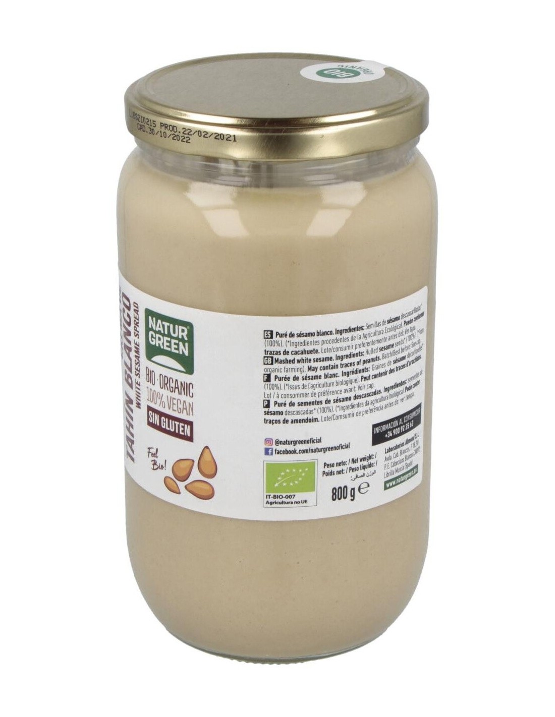 NATURGREENNaturgreen Tahín Ecológico De Sésamo 800 G es una crema vegetal para untar o cocinar, elaborada puramente de semillas de sésamo crudo. También se le denomina puré de sésamo.