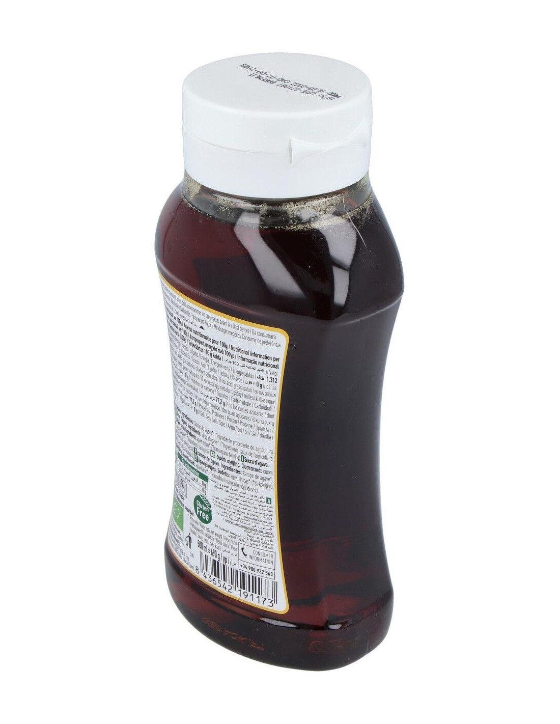Este sirope está elaborado a partir de agave crudo, manteniendo un proceso que evita el refinado excesivo para preservar sus características naturales. Su formato en botella de vidrio contribuye a conservar la calidad del producto y facilita su uso cotidiano.