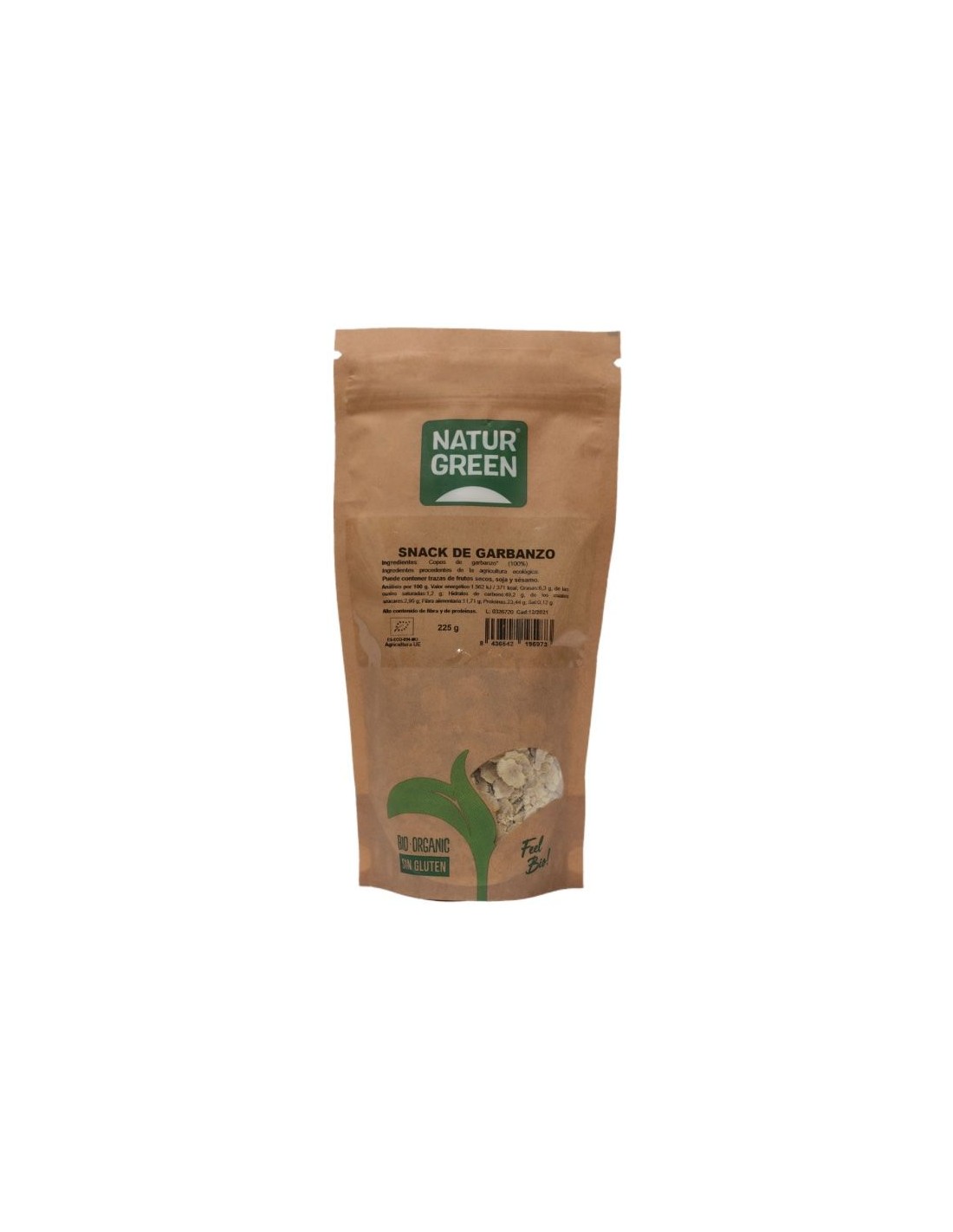 NATURGREENIngredientes:Copos de Garbanzo* (100%). (*) Ingredientes procedentes de la agricultura ecológica.Valor nutricional por 100 gramos: