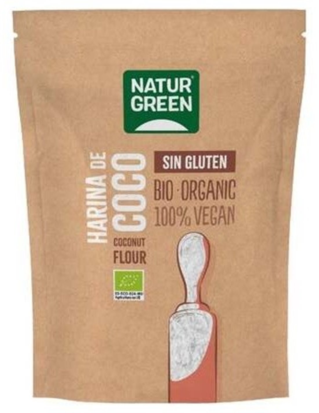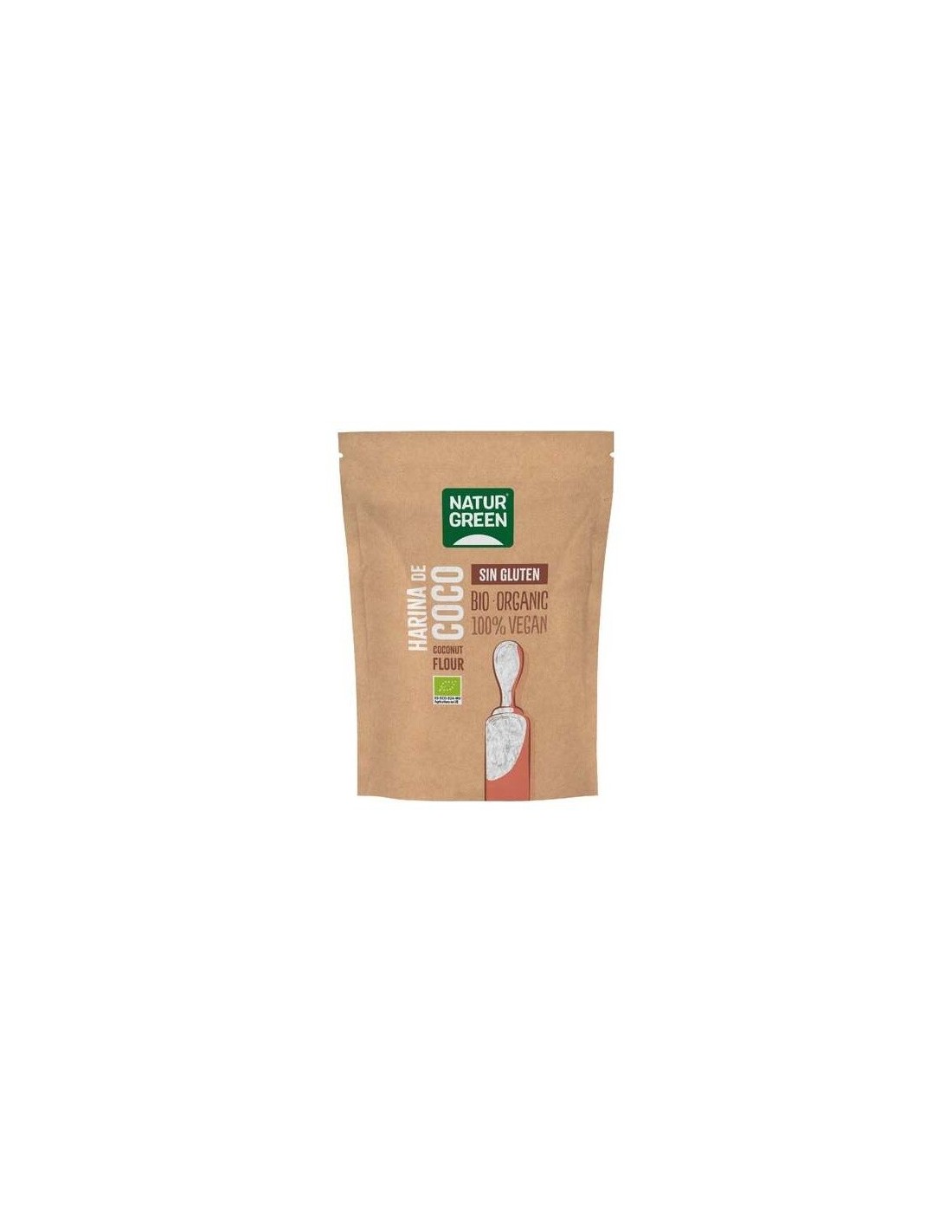 NATURGREENIngredientes:Harina de coco* (100%). (*) Ingredientes procedentes de la agricultura ecológica.Valor nutricional por 100 gramos: