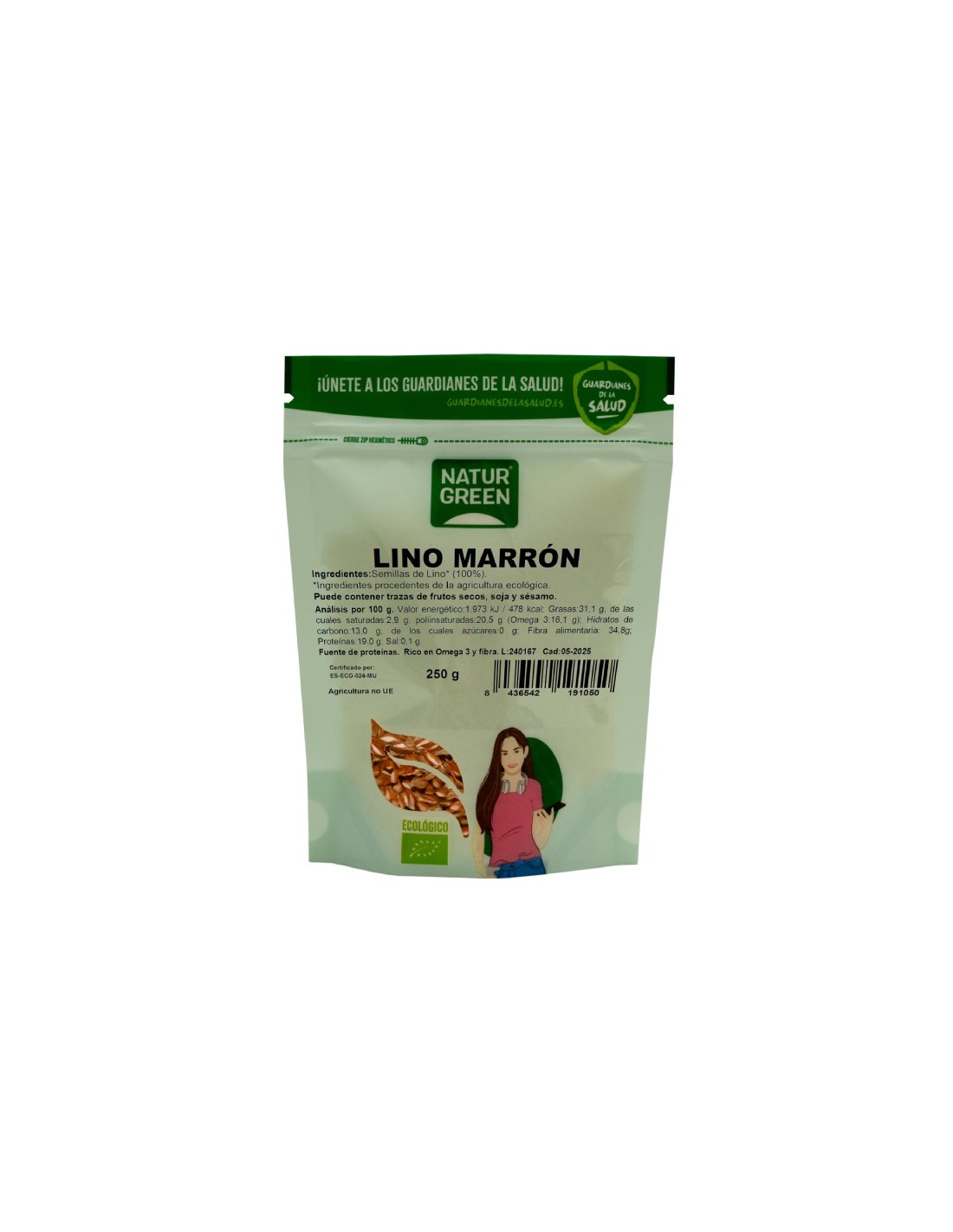 NATURGREENLino Marrón Bio 250 g de NATURGREEN es una semilla natural y ecológica, perfecta para enriquecer tu dieta diaria. Rica en fibra, ácidos grasos omega-3 y antioxidantes, aporta beneficios para la salud digestiva y cardiovascular. Ideal para añadir a batidos, yogures, ensaladas o recetas caseras, su sabor suave y textura crujiente realzan cualquier plato. Producto 100% orgánico, sin aditivos ni conservantes, que garantiza calidad y pureza. NATURGREEN te ofrece una opción saludable y sostenible para cuidar de ti y del planeta.