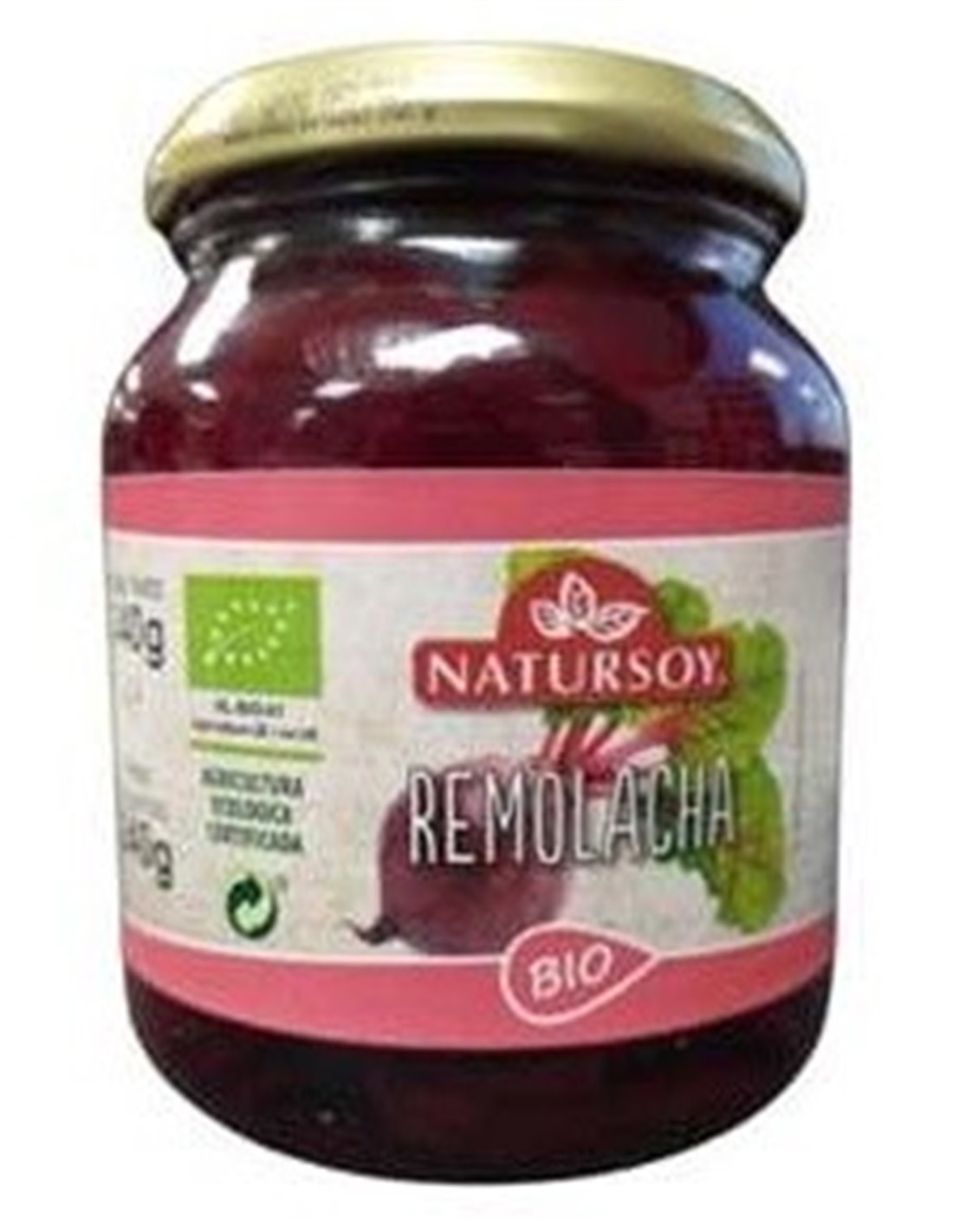 Remolacha*, agua, vinagre*, sirope de agave*, sal marina, cebolla en polvo*, pimienta negra* Valor nutricional por 100 g: Energía: 154kJ/37Kcal Grasas: 0,1g de las cuales saturadas: 0,1g Hidratos de carbono: 6,6g de los cuales azúcares: 6,4g Fibra: 2,2g Proteínas: 1,2g Sal: 0,5 g (*)=De producción ecológica certificada.