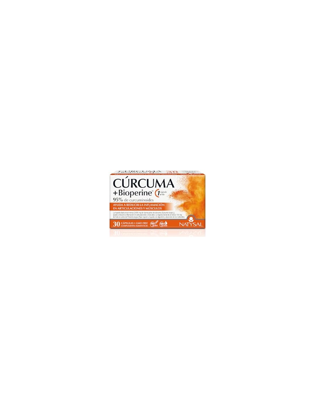 **Curcuma + Bioperine 30Cap. de Natysal** es un suplemento diseñado para personas interesadas en complementar su dieta con ingredientes naturales que apoyan el bienestar general. Su formulación combina extractos específicos que facilitan una mejor absorción y aprovechamiento de sus componentes activos.
