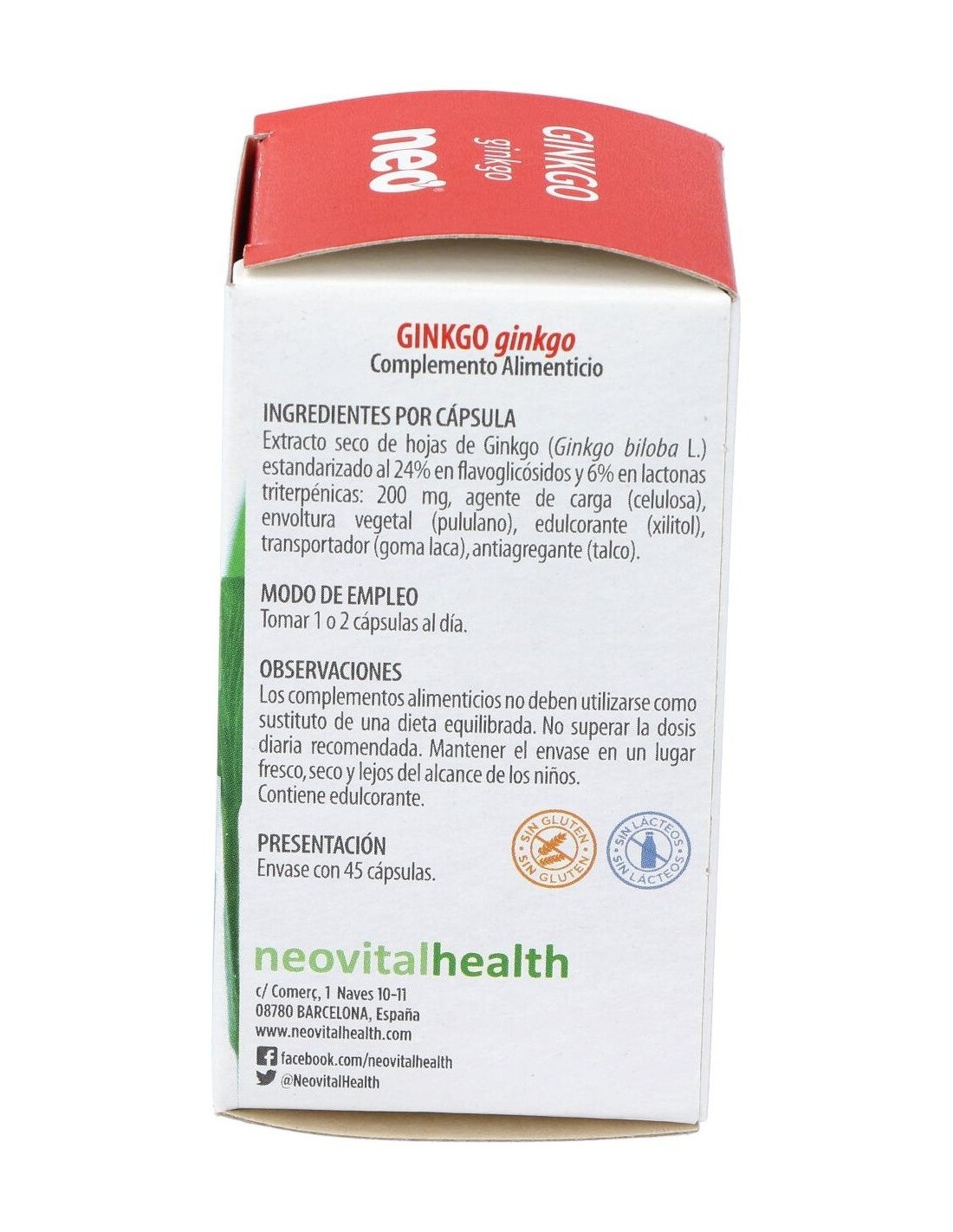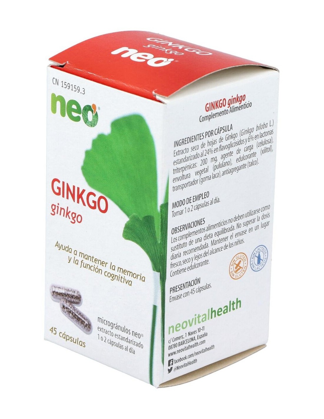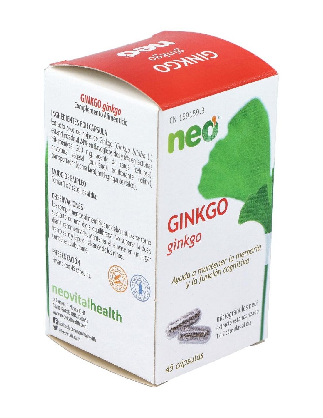 NEONeo | Neo Ginkgo 45cápsEl Ginkgo biloba es un árbol milenario originario de China cuyos beneficios naturales han sido utilizados a lo largo de la historia para favorecer la correcta circulación sanguínea. Algunas de sus propiedades son:Vasorregulador: refuerza la resistencia capilar y aumenta el flujo sanguíneo.