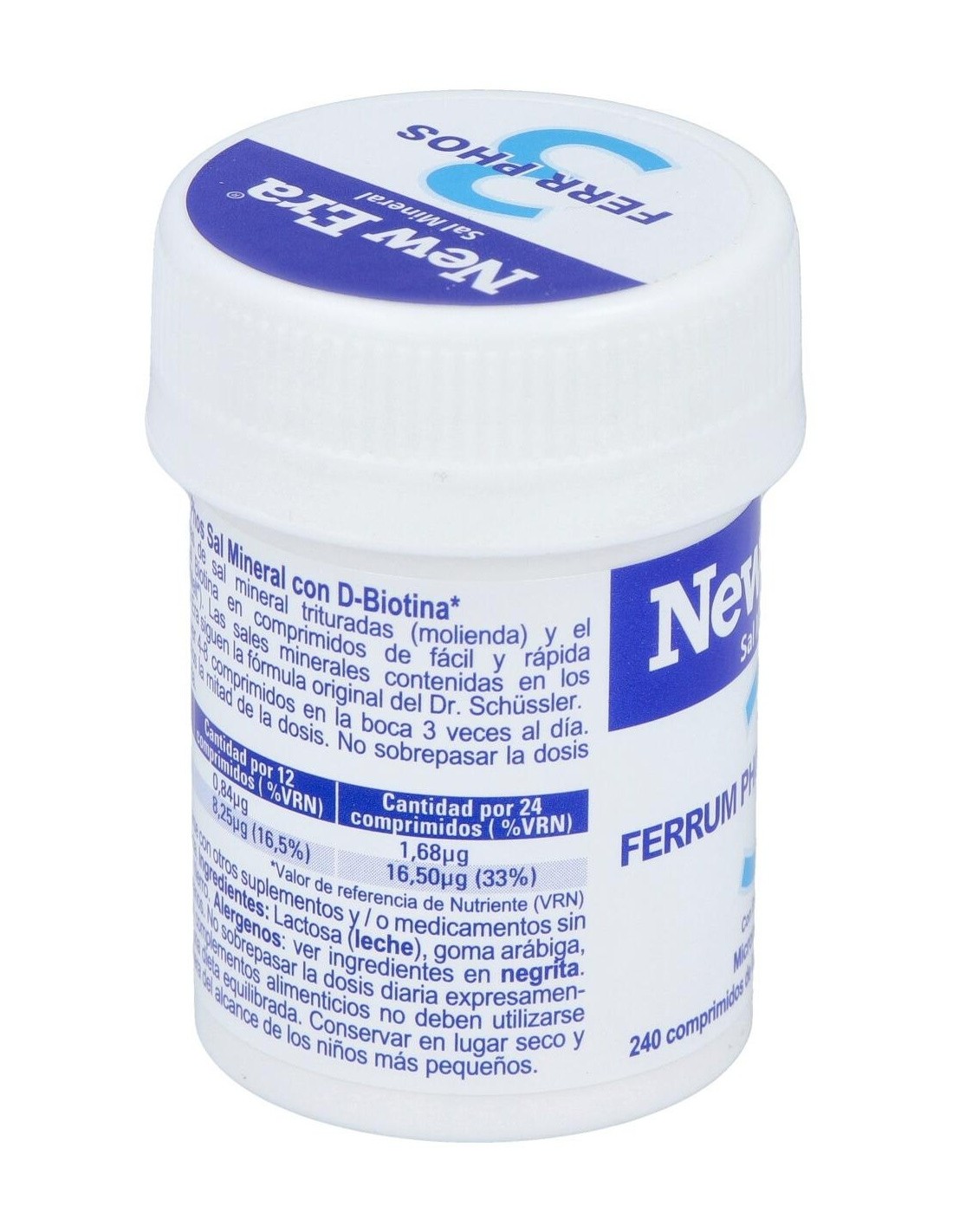 NEW ERANew Era Schüssler Nr.3 ferrum Phosphoricum 240comp complemento alimenticio a base de Sales de Schüssler número 3.