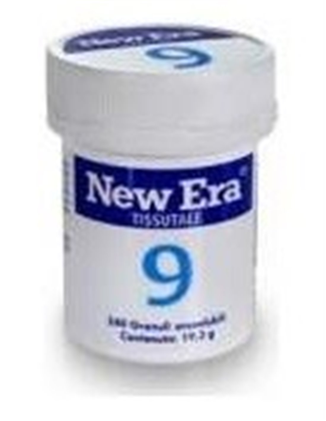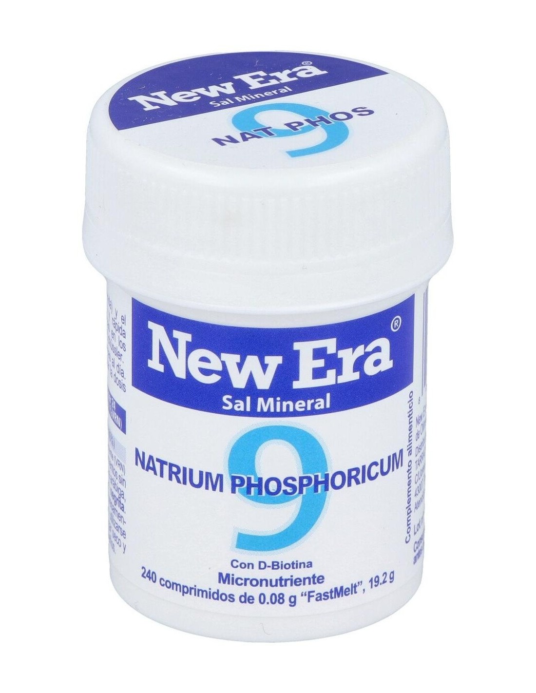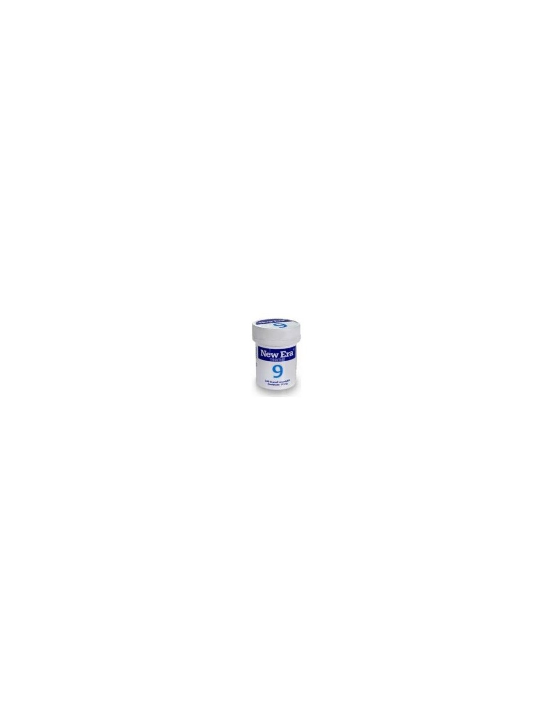 Sal de Schüssler Nr.9 Natrium phosphoricum (fosfato de sodio). Contiene partículas de sal mineral trituradas (molienda) y el nutriente esencial Biotina en comprimidos de fácil y rápida disolución ('FastMelt'). Las sales minerales contenidas en los comprimidos New Era siguen la fórmula original del Dr. Schüssler. Apto para vegetarianos.