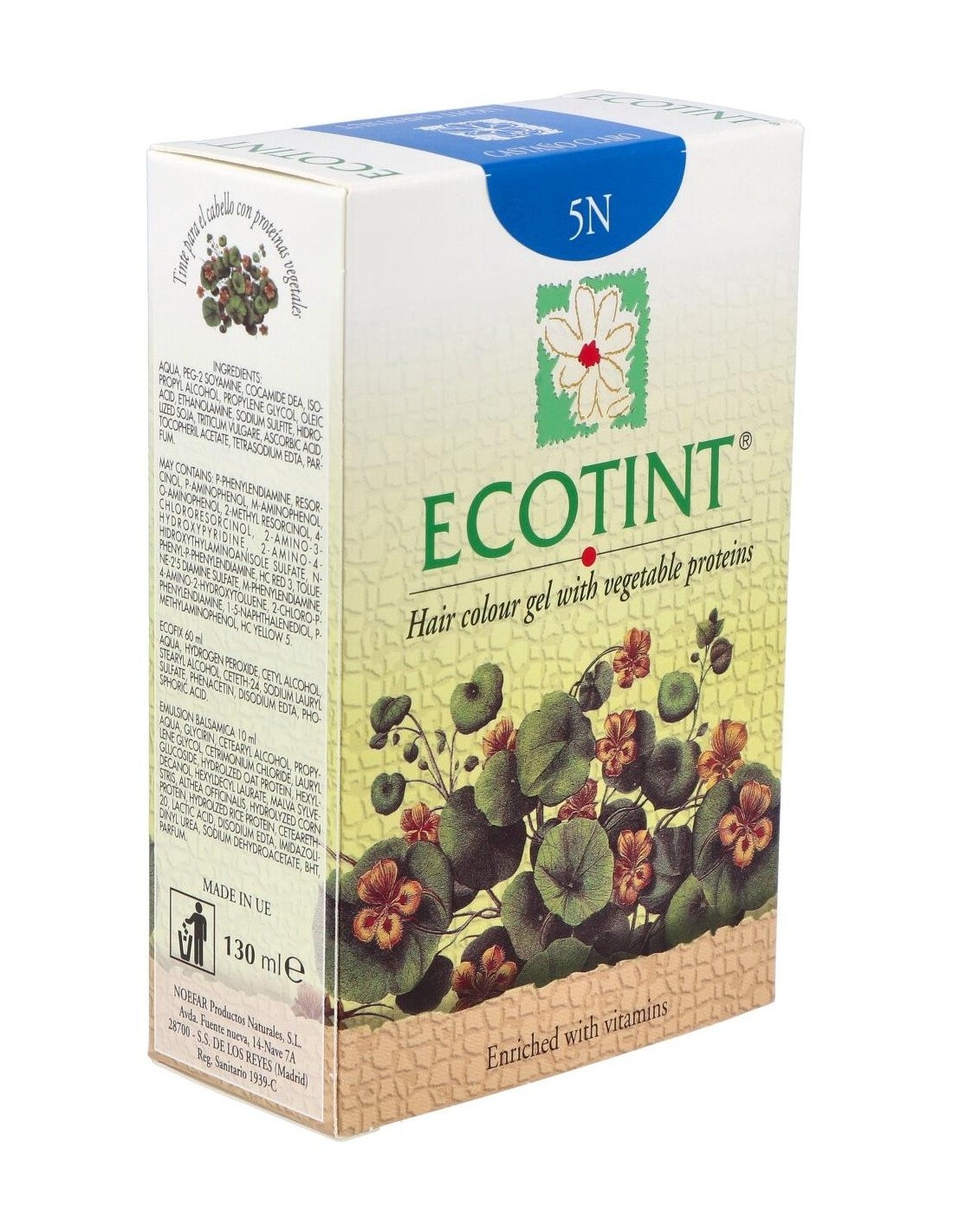 Tinte en gel: Aqua, Peg-2 Soyamine, Cocamide dea, Isopropyl Alcohol, Propilene Glycol, Oleic acid, Ethanolamine, Sodium Sulfite, Hidrolized soja, Triticum vulgare, Ascorbic acid, Tocopheril acetate, Tetrasodium edta, Parfum. P-Phenylendiamine, Resorcinol, P Aminophenol, M-Aminophenol, O-Aminophenol, 2-Methyl Resorcinol, 4 Chlororesorcinol, 2-Amino-3-Hydroxypyridine, 2-Amino-4-HydroxyThylaminoanisole sulfate, N-Phenyl-P-Phenylendiamine, HC Red 3, Toluene-2,5 Diamine sulfate, M Phenylendiamine, 4-Amino-2-Hydroxytoluene, 2-Chloro-P-Phenylendiamine, 1-5 Naphthalenediol, P-Methylaminophenol, HC Yellow 5.