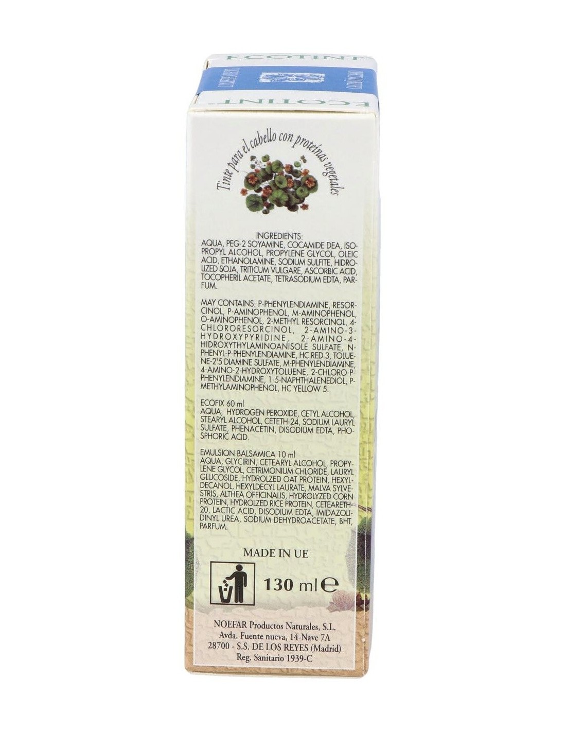 Ecofix 60 ml: Aqua, Hydrogen Peroxide, Cetyl Alcohol, Stearyl Alcohol, Ceteth-24, Sodium Lauryl Sulfate, Phenacetin, Disodium Edta, Phosphoric acid.