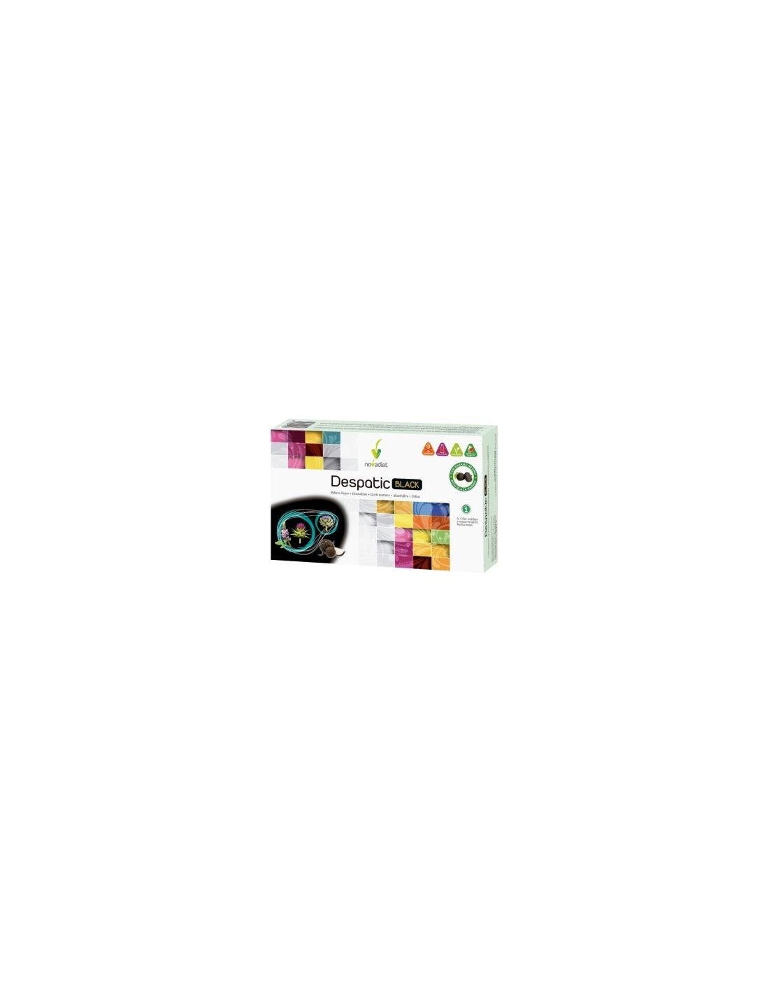 NOVADIET.El Pack 3x2 Despatic Black Viales de Novadiet es un complemento alimenticio para adultos que contribuye al bienestar diario, presentado en envases de 20 viales de 10 ml para una dosificación práctica y cómoda.