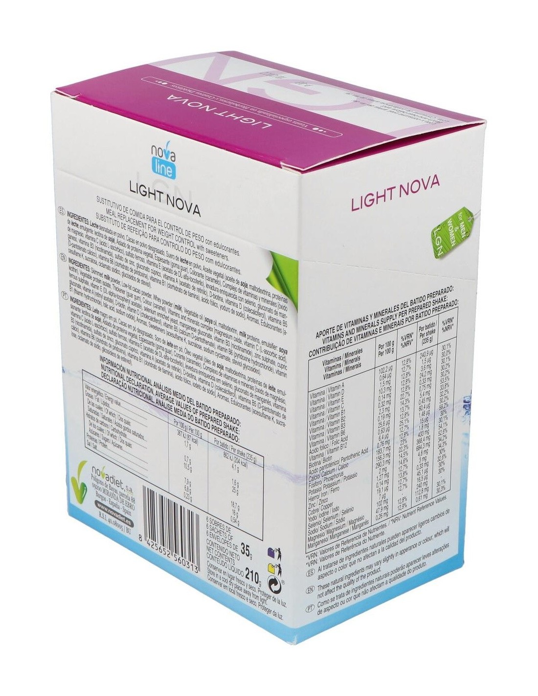 Light Nova Chocolate Envase de 6 sobres de 35 g. de Novadiet