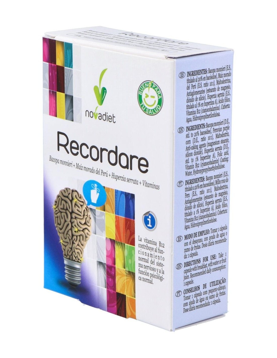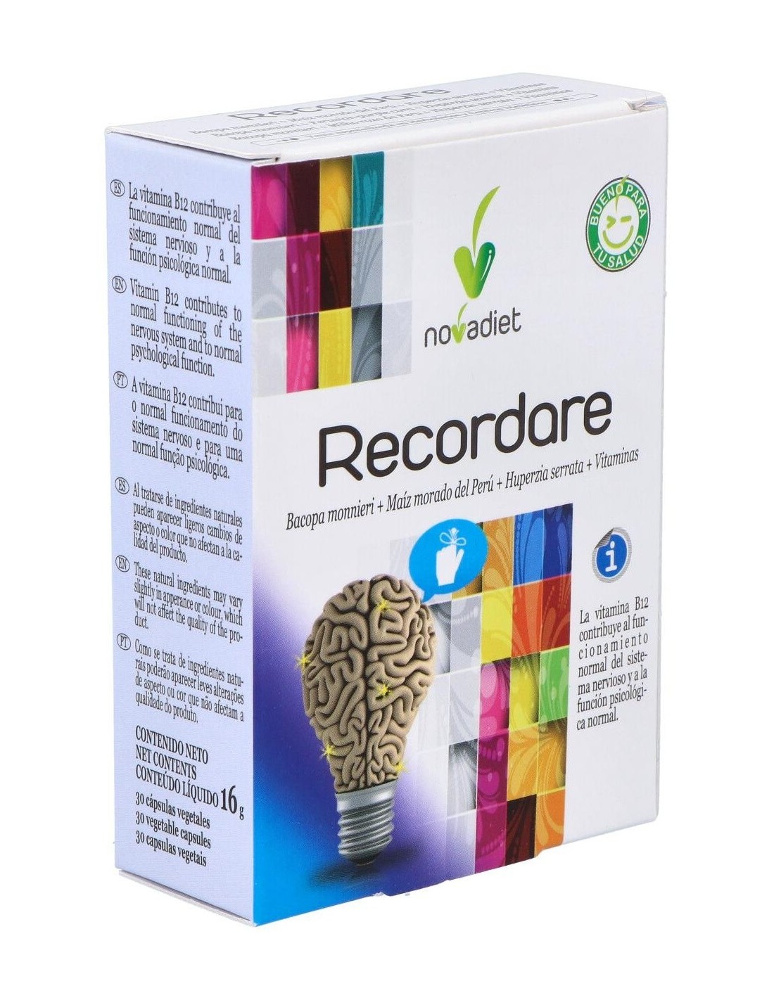 NOVADIETRecordare es un complemento que ayuda a prevenir la pérdida de memoria y el deterioro cognitivo a partir de la mediana edad y ayuda a mejorar el estad