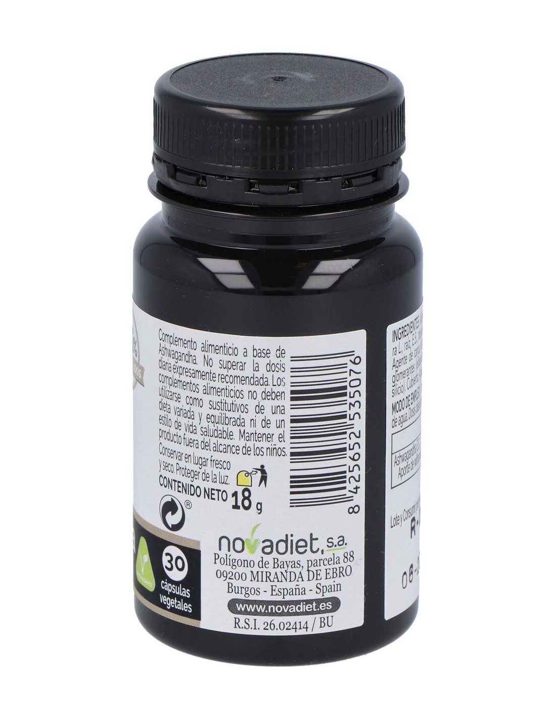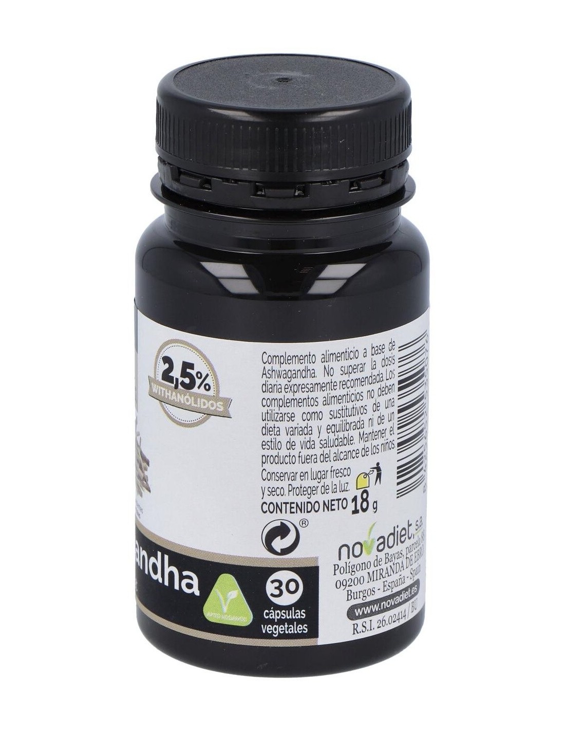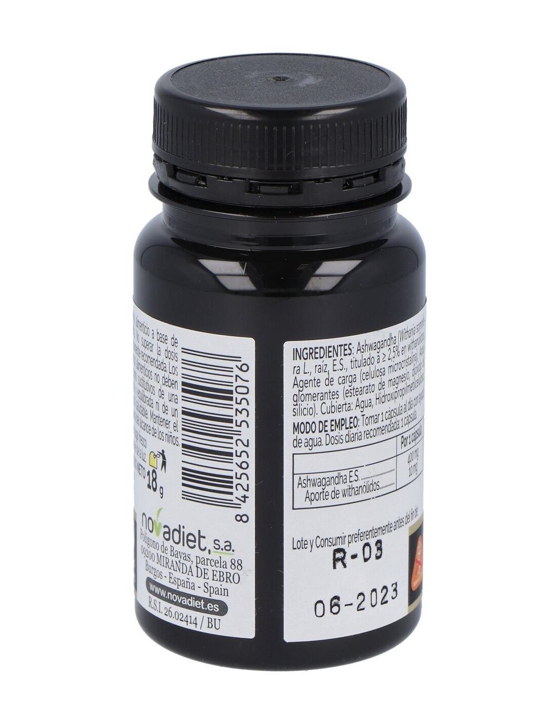 Este envase de Ashwagandha en cápsulas vegetales de Novadiet proporciona una forma práctica y natural de incluir este ingrediente en la dieta diaria, contribuyendo a una alimentación equilibrada.