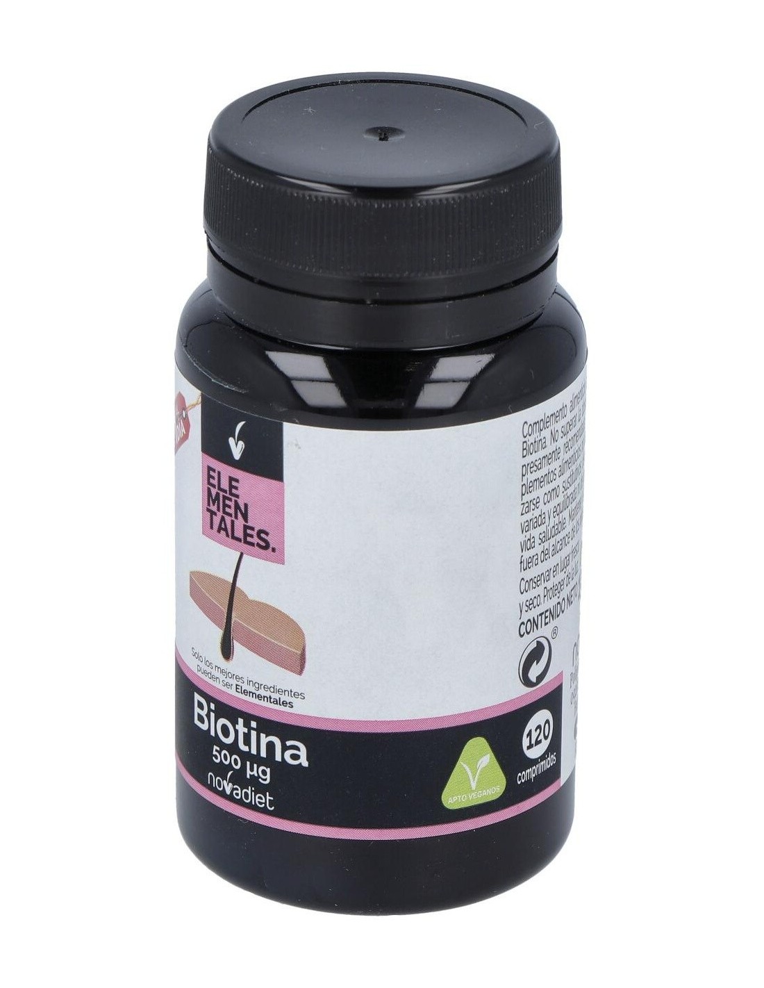 Biotina 500 Mcg Envase de 120 comprimidos de Novadiet es un suplemento diseñado para personas que buscan complementar su ingesta diaria de biotina de manera práctica y dosificada. Es adecuado para quienes desean mantener una rutina de cuidado personal enfocada en el bienestar general.