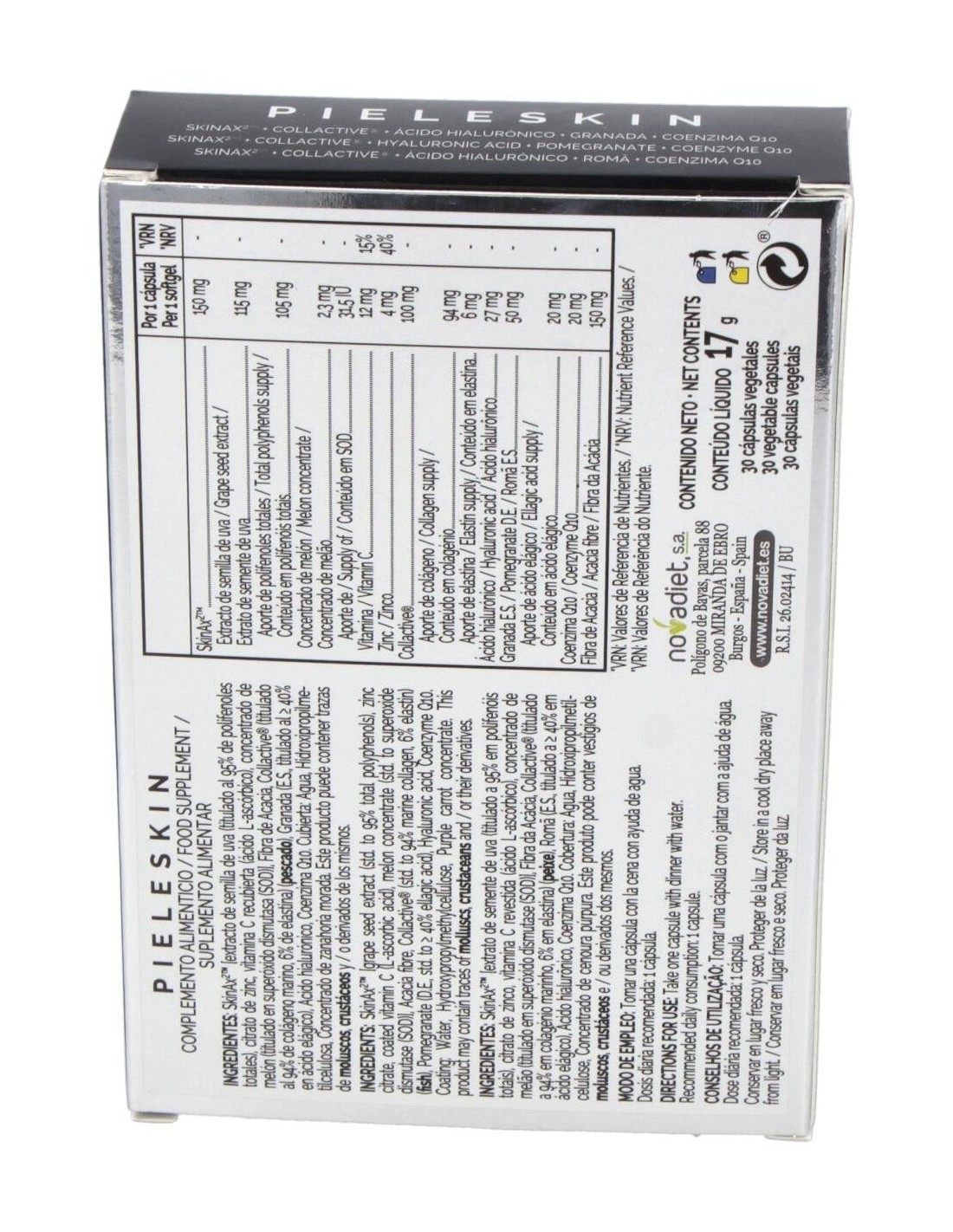 Pieleskin Envase de 30 cápsulas vegetales. de Novadiet