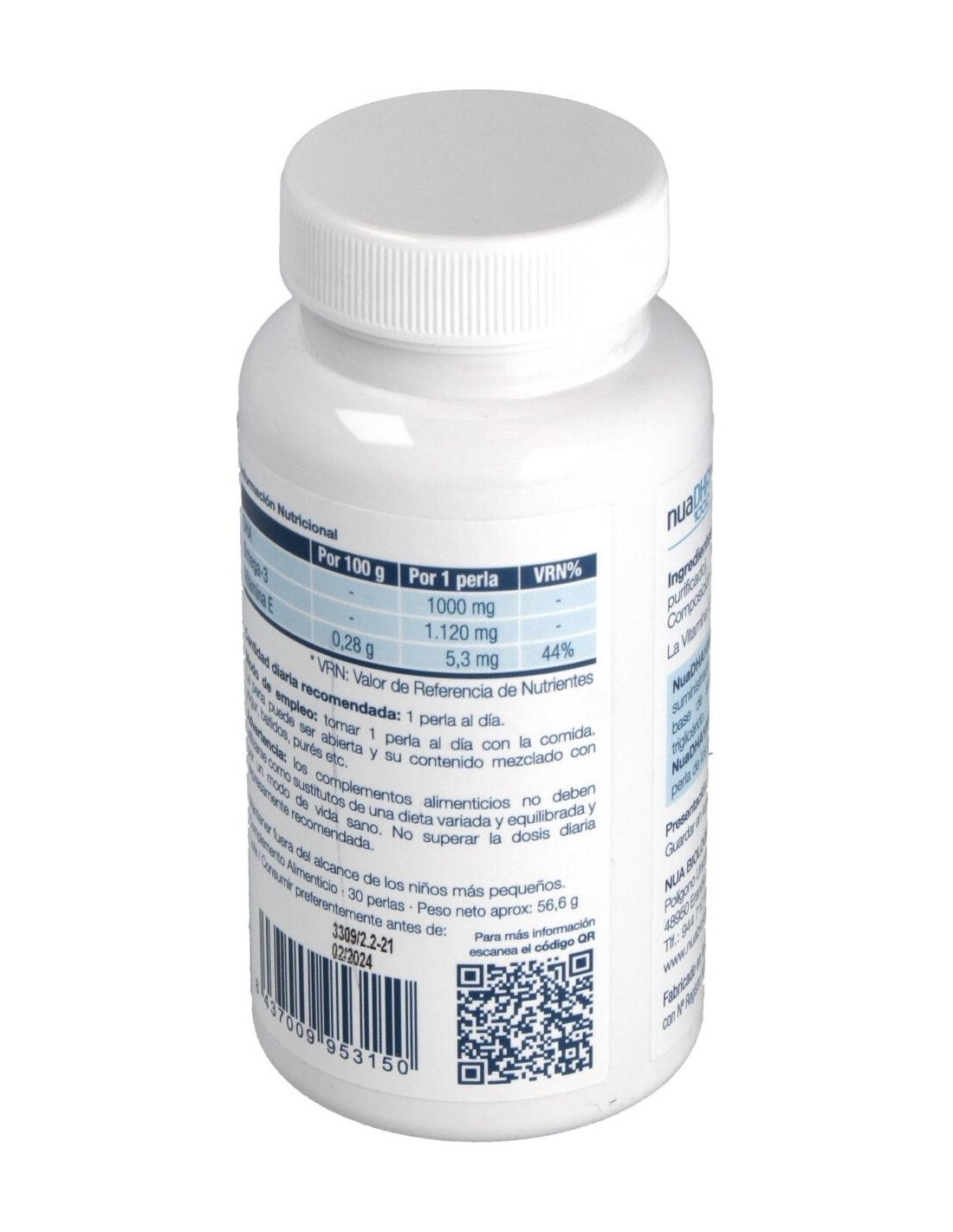 NUAComplemento alimenticio muy puro y concentrado a base de omega-3 (procedente de pescado). Una perla de NuaDHA 1000 contiene aprox.