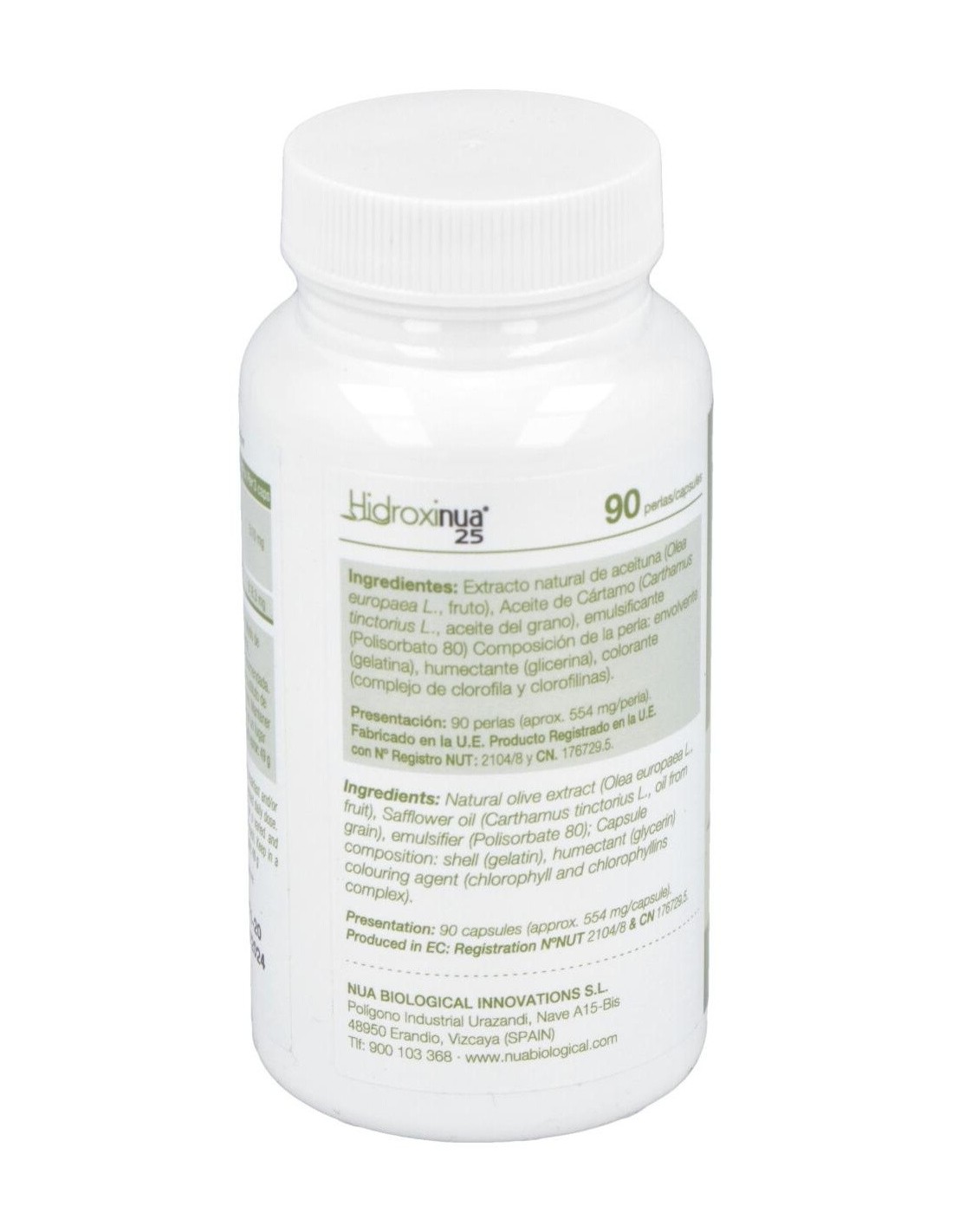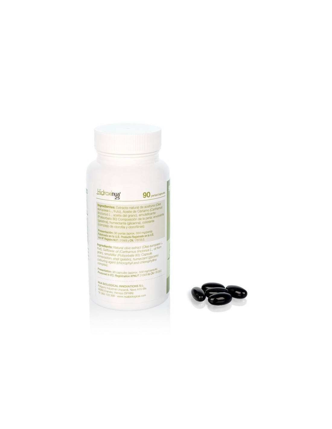 Extracto natural del fruto de Olea europaea ( 25,5 mg de Hidroxitirosol/perla)..510 mg