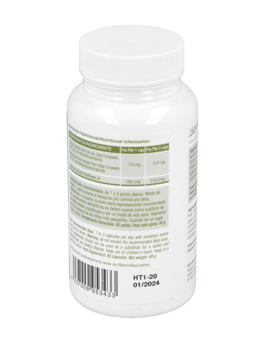 NUASuplemento a base de un extracto natural de aceituna rico en Hidroxitirosol (HT), un fenol al que se le atribuyen propiedades antioxidantes. Suplemento a base de un extracto natural de aceituna rico en Hidroxitirosol (HT), un fenol al que se le atribuyen propiedades antioxidantes.