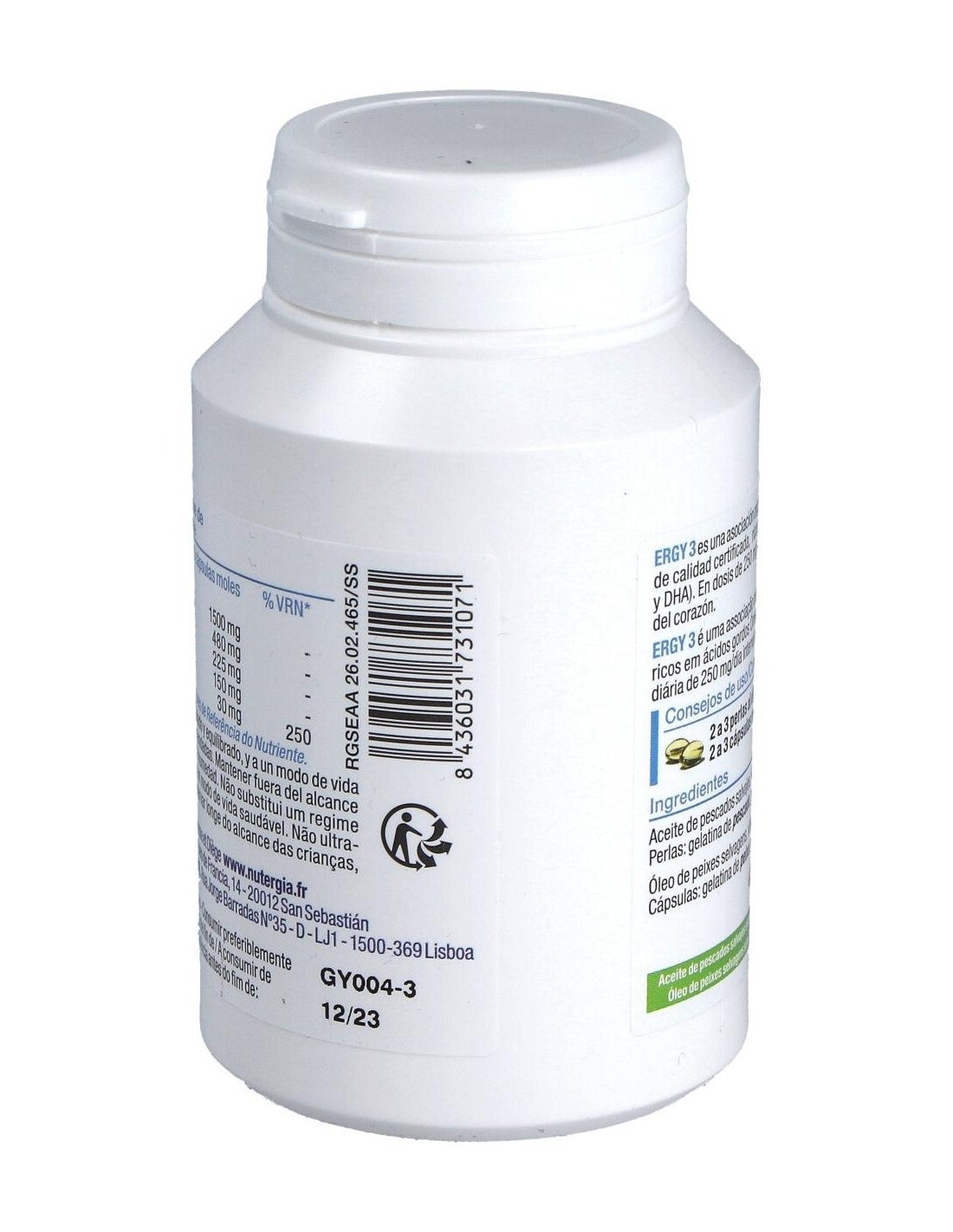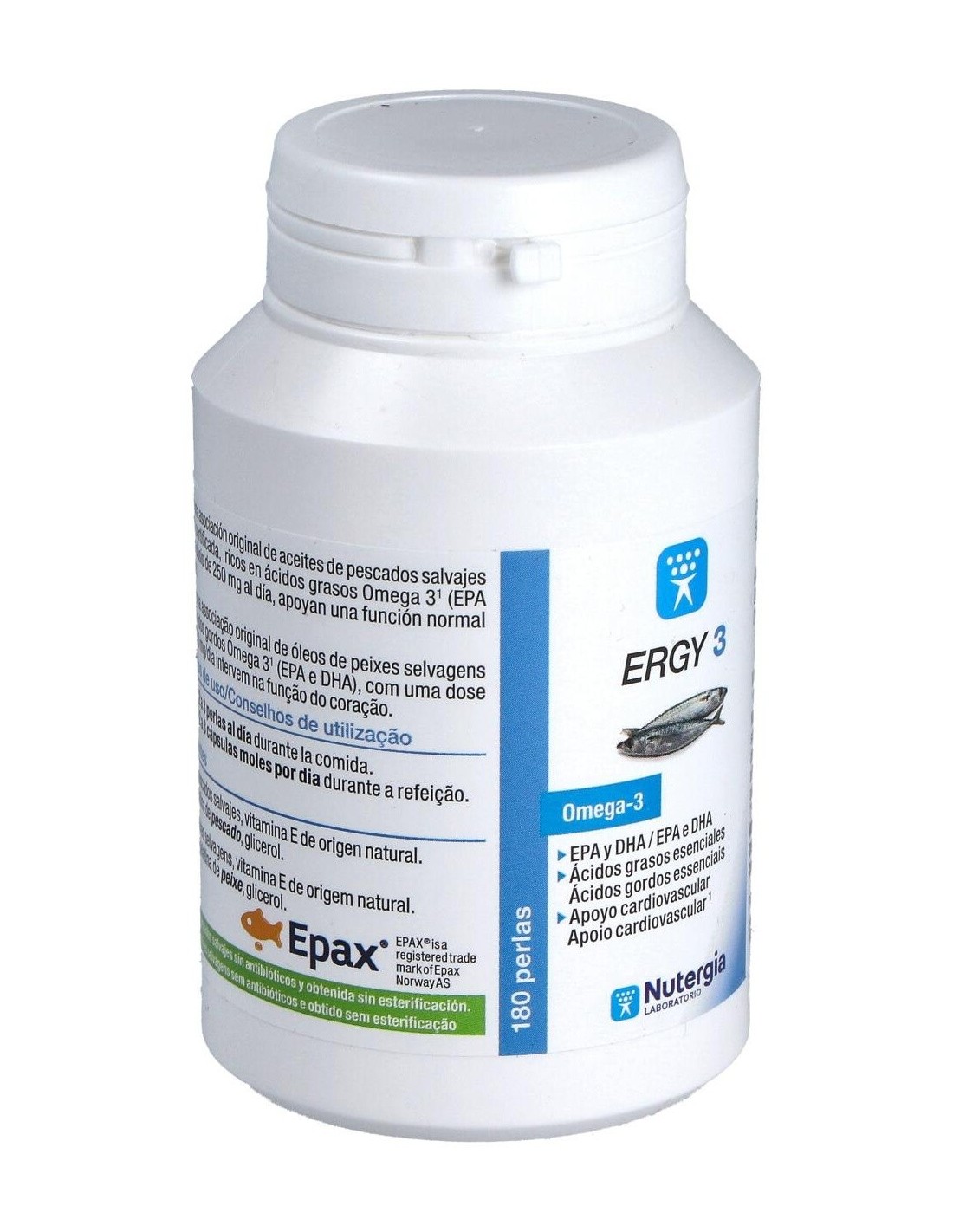 NUTERGIAComplemento alimenticio compuesto de aceites de pescados EPAX de calidad certificada. Los pescados grasos como la anchoa, utilizado en ERGY 3, permiten obtener un aceite rico en ácidos grasos omega-3, especialmente en EPA y DHA.