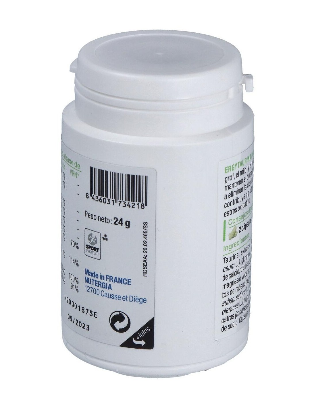 - Contiene taurina, un aminoácido que contribuye al metabolismo energético y al funcionamiento celular.