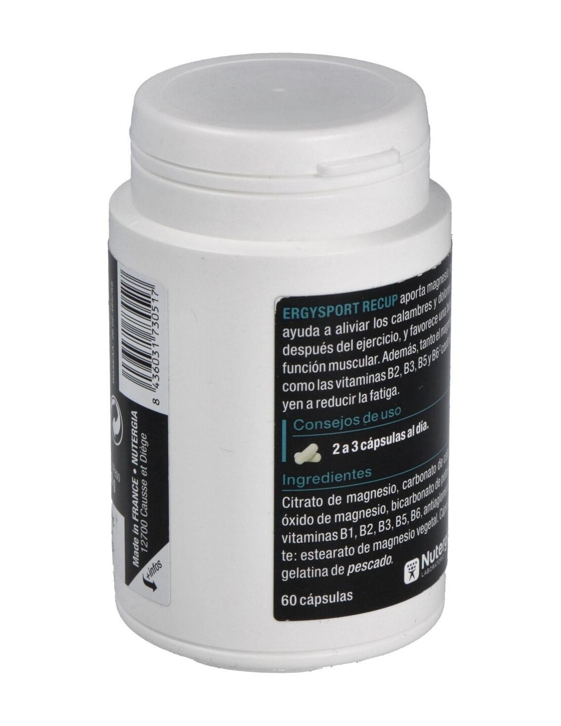 NUTERGIAEl Ergysport Recup 60Cap. de Nutergia es un complemento alimenticio para deportistas que contribuye a la recuperación muscular gracias a su fórmula equilibrada de aminoácidos y nutrientes esenciales.