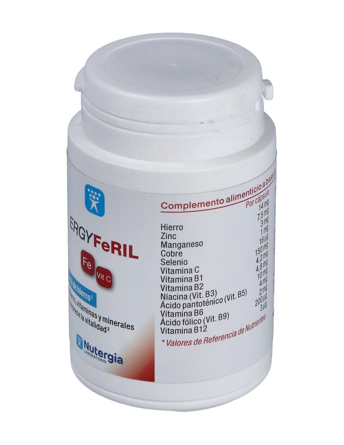 NUTERGIAErgyferil es una asociación de 8 vitaminas, 4 minerales y 3 plantas con propiedades complementarias de gran interés en estados de carencia o deficienc