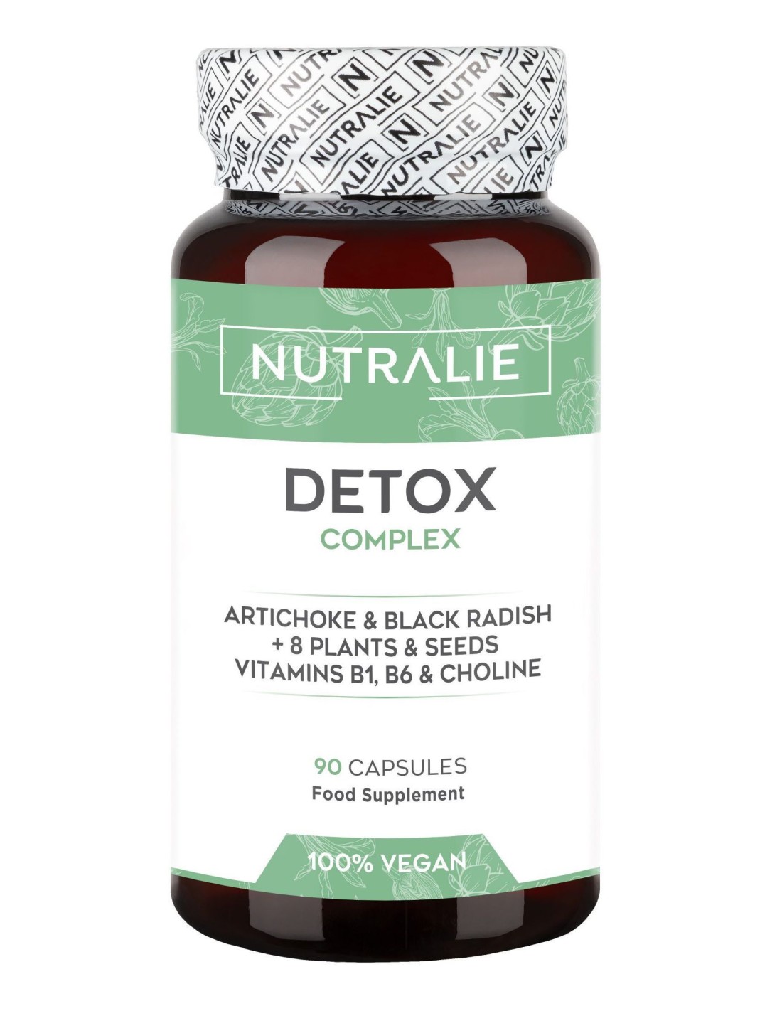 NUTRALIEDetox Complex es 100% natural y vegano y está compuesto por diferentes plantas y semillas entre las cuáles destacan la alcachofa y el rábano negro. Ad