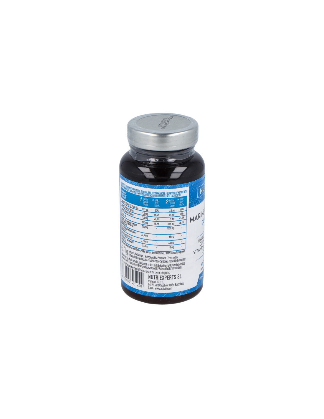 NUTRALIEColágeno Marino Complex de Nutralie contiene 1000 mg de colágeno hidrolizado marino. Además, dentro del propio colágeno marino se encuentran péptidos