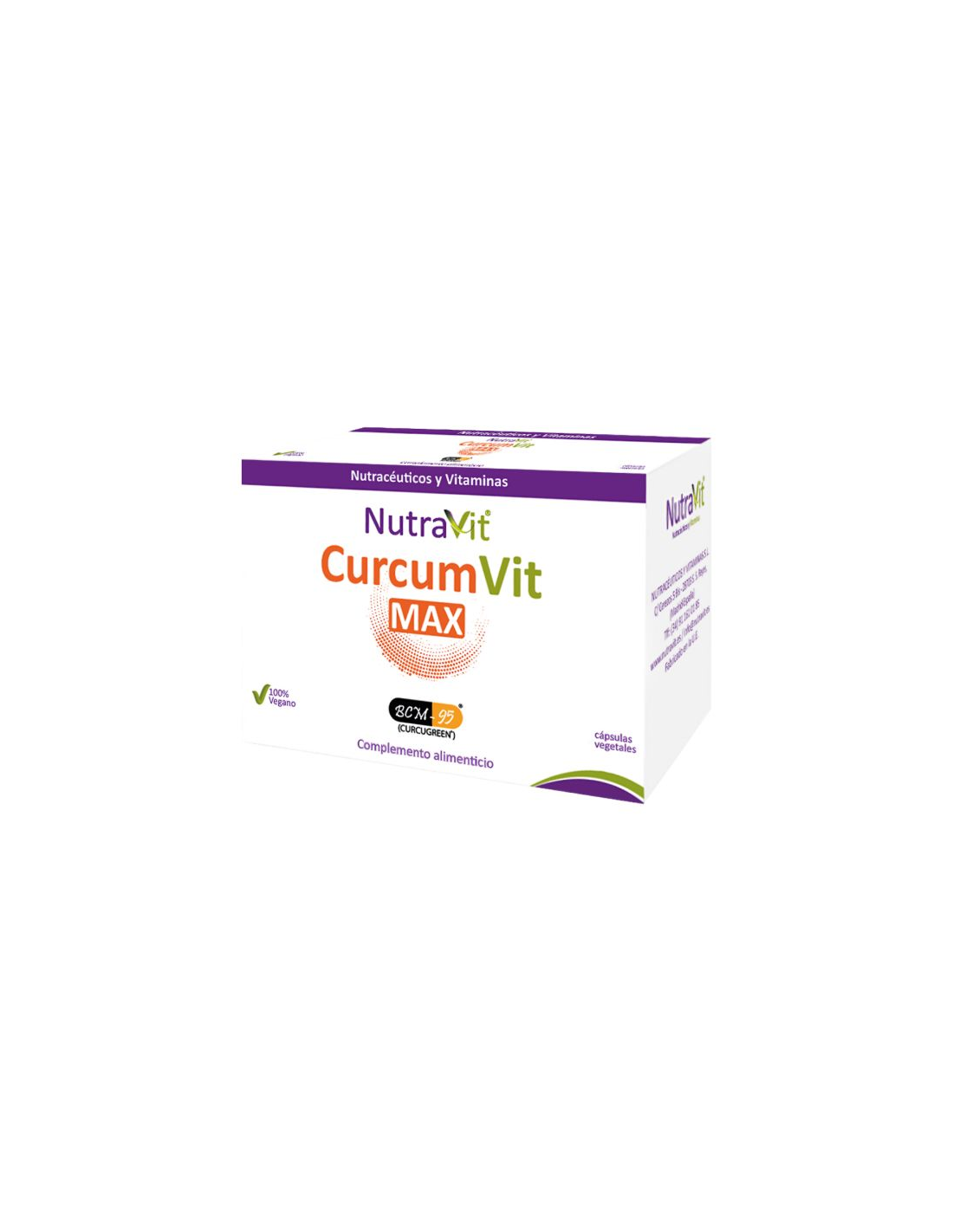 NUTRAVITCurcumVit Max es un complemento Alimenticio a base de Cúrcuma BCM-95®, Extracto de Granada (40% ácido elágico, 40% punicalaginas), L-Lisina y L-Metion