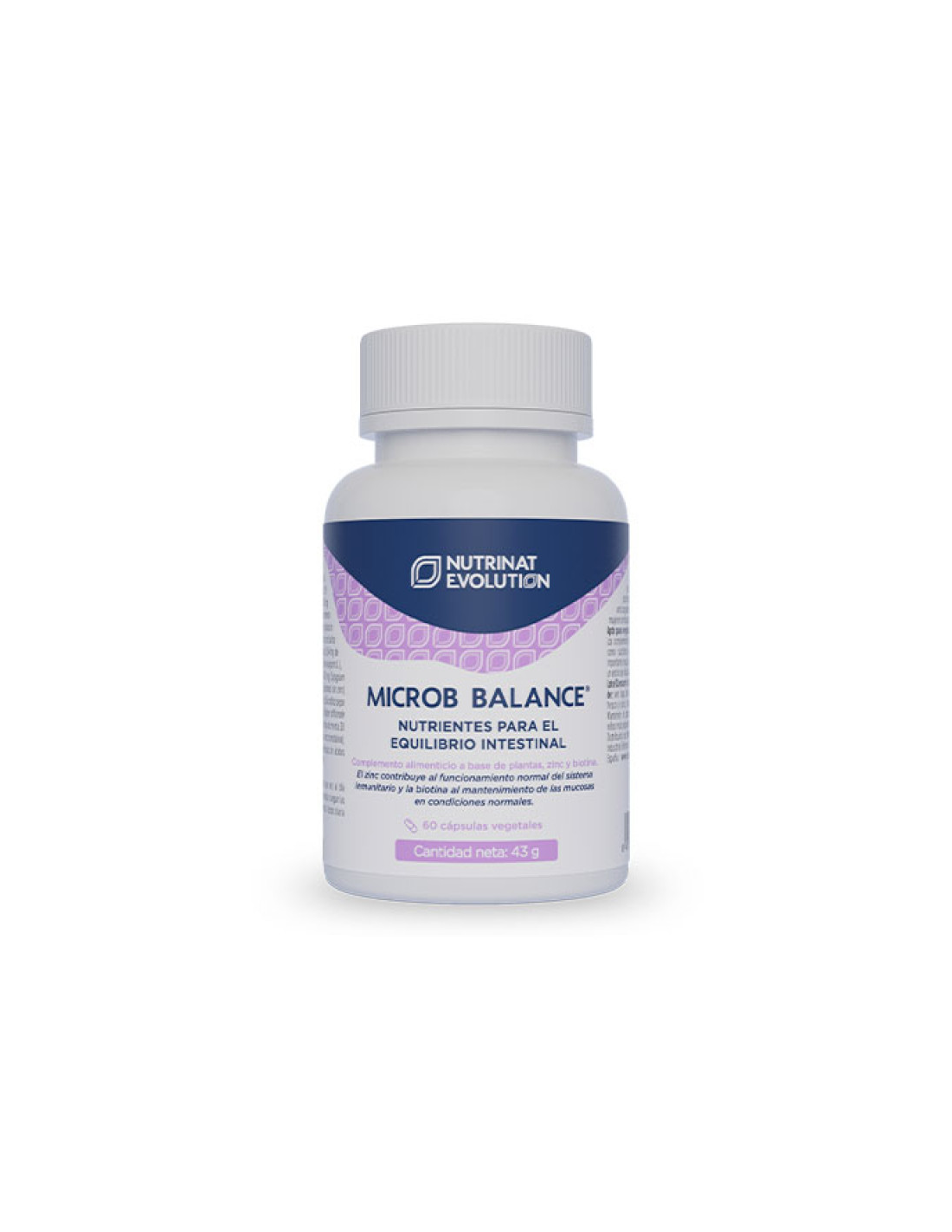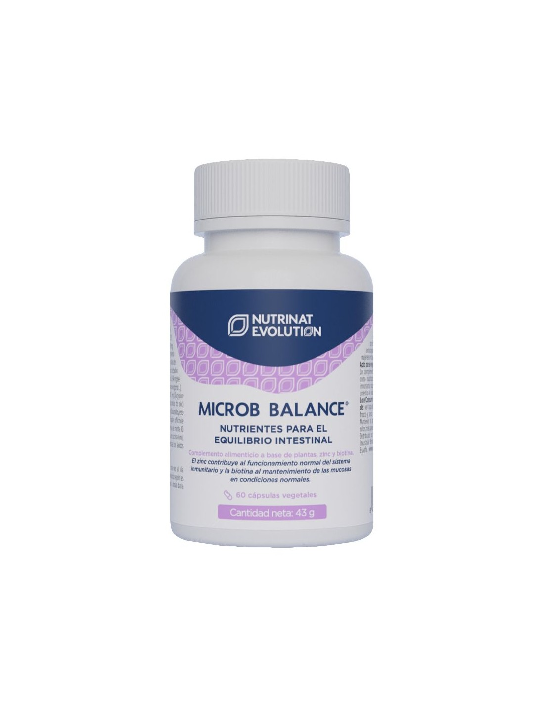 NUTRINAT EVOLUTIONMicrob Balance® de Nutrinat Evolution es un complemento alimen- ticio que incluye una mezcla de plantas, extractos vegetales, zinc y biotina, seleccio