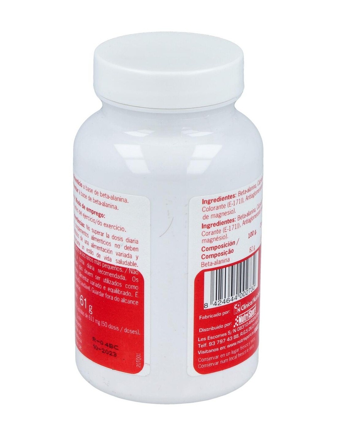 Suplemento formulado a base de ß-Alanina. La ß-Alanina es un derivado de la Alanina (aminoácido esencial importante en procesos de obtención de energía). Al suplementarnos con ß-Alanina, nuestros niveles de Carnosina aumentan. La Carnosina interviene en la fatiga muscular, haciendo que nuestros músculos tengan más resistencia frente al esfuerzo y el cansancio aparezca más tarde (inhibiendo el efecto que causa el exceso de ácido láctico en la musculatura). Por lo que al tomar una dosis de este suplemento antes de ejercicio físico conseguirá mejorar nuestro rendimiento (incrementando explosividad, potencia y resistencia) y retrasar la fatiga en la masa muscular.