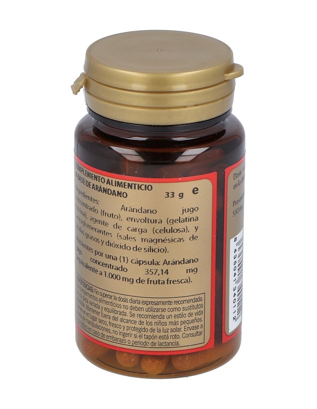 Complemento alimenticio de arándano que ayuda a proteger los problemas cardiovasculares y sus antiadherentes de infecciones digestivas y urinarias. Rico en antioxidantes y en bioflavonoides. Las frutas son vasoprotectores, cicatrizantes, antidiarreicos y protectores de la mucosa gástrica, por lo que está indicada en estomatitis, faringitis y diarrea. También útil para varices, hemorroides, flebitis, amenorrea, hemorragia vaginal o uterina. Arbusto de regiones montañosas con bayas negro-azuladas, ricas en antocianósidos y taninos.