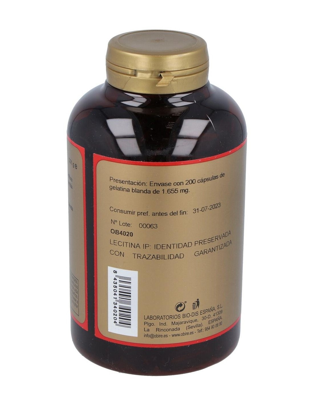OBIREComplemento alimenticio a base de soja. LECITINA DE SOJA IP 1200mg.