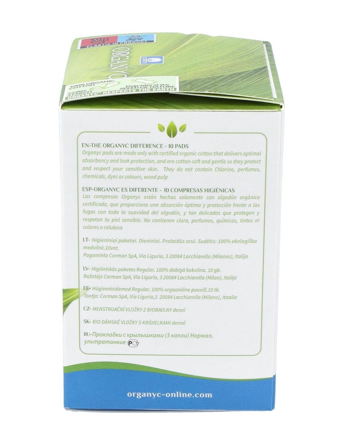 Compresas dia c/alas (bolsa ind) 100% algodón orgánico, 10ud de Organyc
