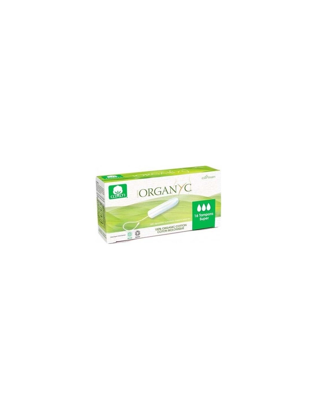 Tampón sin aplicador súper 100% algodón orgánico, 16ud de Organyc