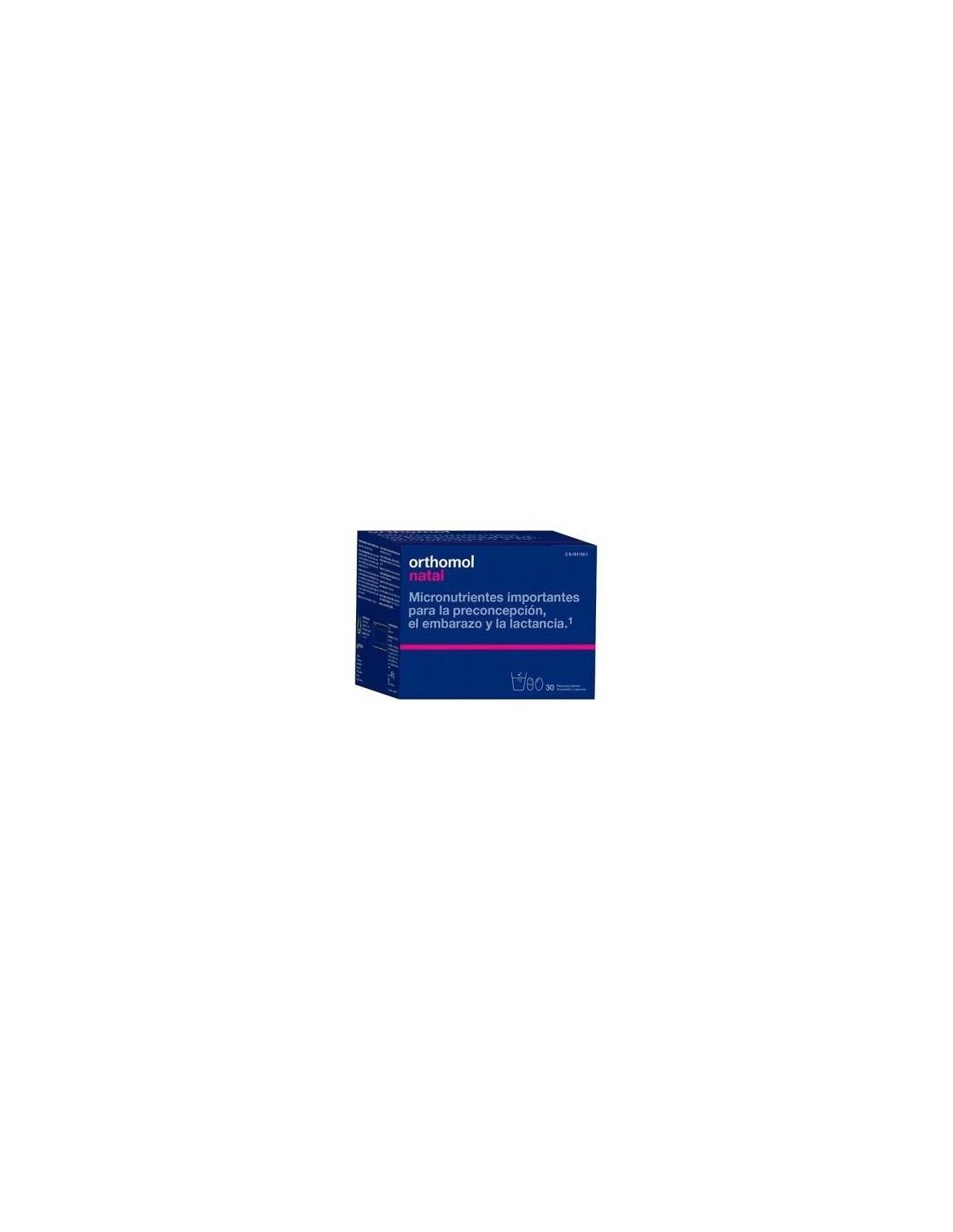 Natal de Orthomol es un complemento alimenticio que Contiene una combinación de ácido fólico y Quatrefolic. Quatrefolic es una forma activa de ácido fólico, que está disponible para el cuerpo sin conversión previa y por lo tanto tiene una mayor biodisponibilidad. Además contiene un cultivo de bacterias ácido lácticas y ácidos grasos Omega-3.El ácido fólico contribuye al crecimiento del tejido materno durante el embarazo. La ingesta suplementaria de ácido fólico aumenta los niveles de folato en las mujeres embarazadas. Una cantidad baja de folato materno es un factor de riesgo de defectos del tubo neural en el feto en desarrollo.El hierro contribuye a la formación normal de glóbulos rojos y hemoglobina. La colina contribuye al metabolismo normal de la homocisteína. El calcio, el magnesio, el zinc, el hierro, la vitamina D, la vitamina B12 y el ácido fólico contribuyen al proceso de división celular. La vitamina C, la vitamina B6, la vitamina B12, la vitamina D, el ácido fólico, el hierro, el zinc, el selenio y el cobre contribuyen al funcionamiento normal del sistema inmunitario.El calcio es necesario para el mantenimiento de los huesos en condiciones normales. La vitamina K y la vitamina D, así como el zinc y el magnesio, contribuyen al mantenimiento de unos huesos normales. La vitamina D contribuye a la absorción y utilización normal del calcio. El yodo y el selenio contribuyen al funcionamiento normal del tiroides. El calcio y el magnesio contribuyen al funcionamiento normal de los músculos. La vitamina C, la riboflavina (vitamina B2), la vitamina B6, la vitamina B12, el ácido fólico, la niacina, el ácido pantoténico y el magnesio ayudan a reducir el cansancio y la fatiga.Composición activa por 1 sobre y 3 cápsulas: