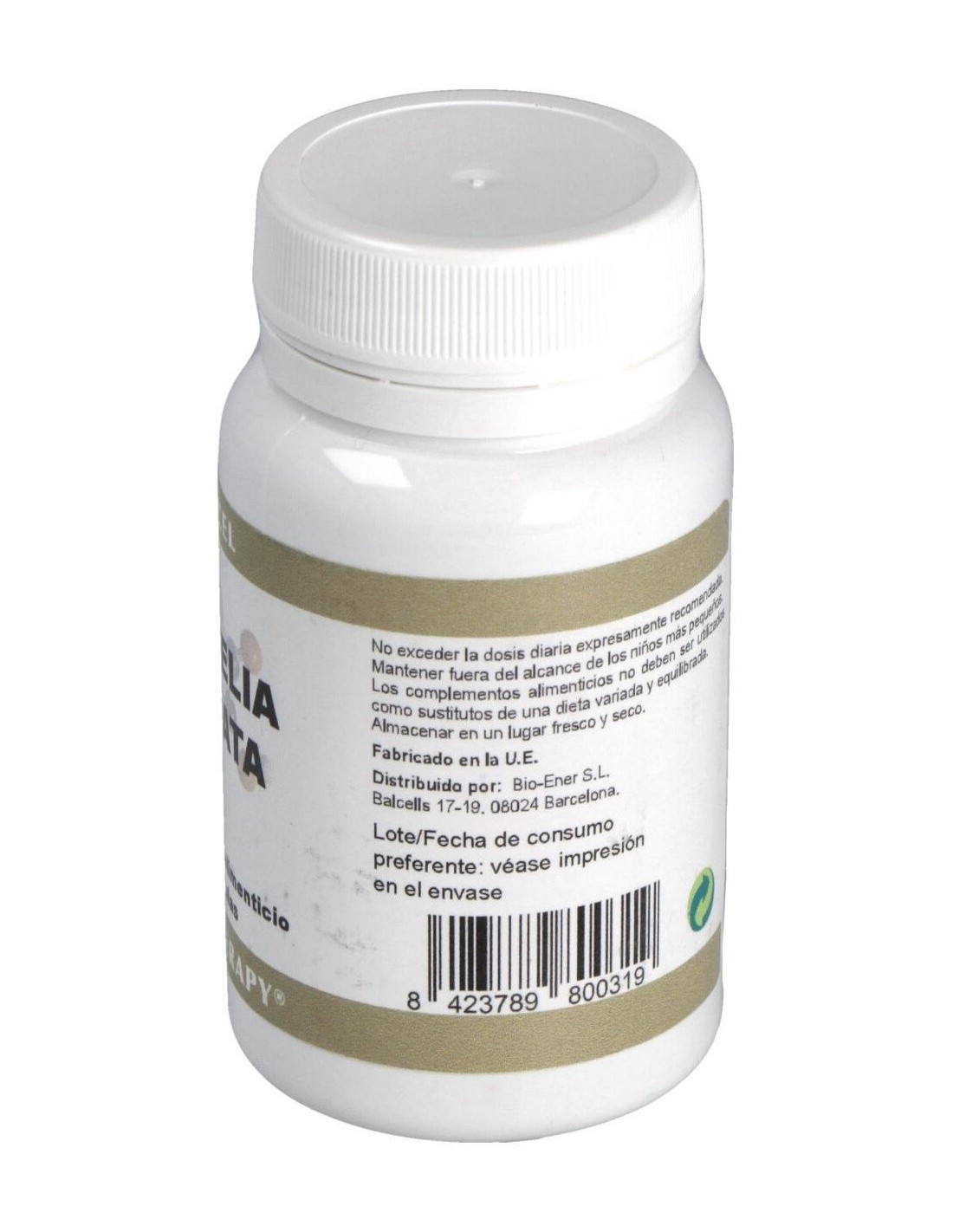Celulosa microcristalina, cápsula de gelatina transparente: antiaglomerante: estearato de magnesio y dióxido de silicio (aerosil).