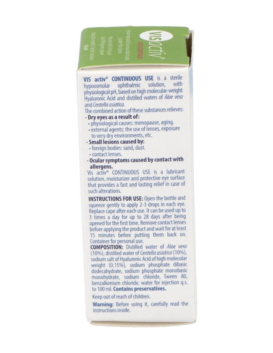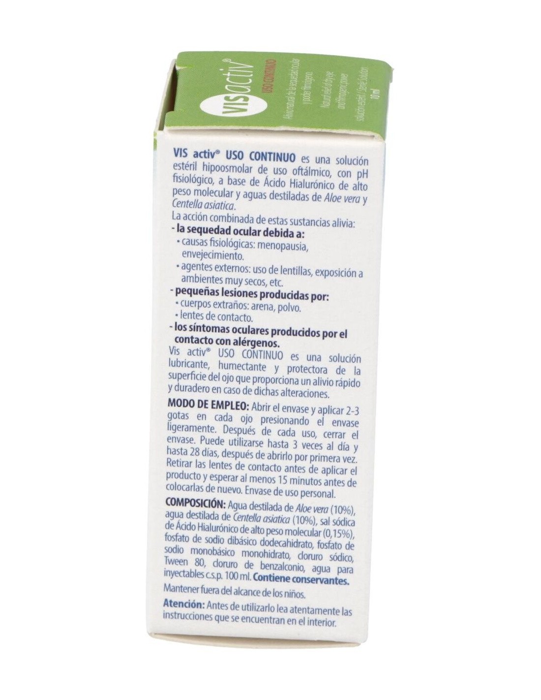Retirar las lentes de contacto antes de aplicar Visactiv y esperar al menos 15 minutos antes de colocarlas de nuevo. Presentación:Envase multidosis de 10 ml.