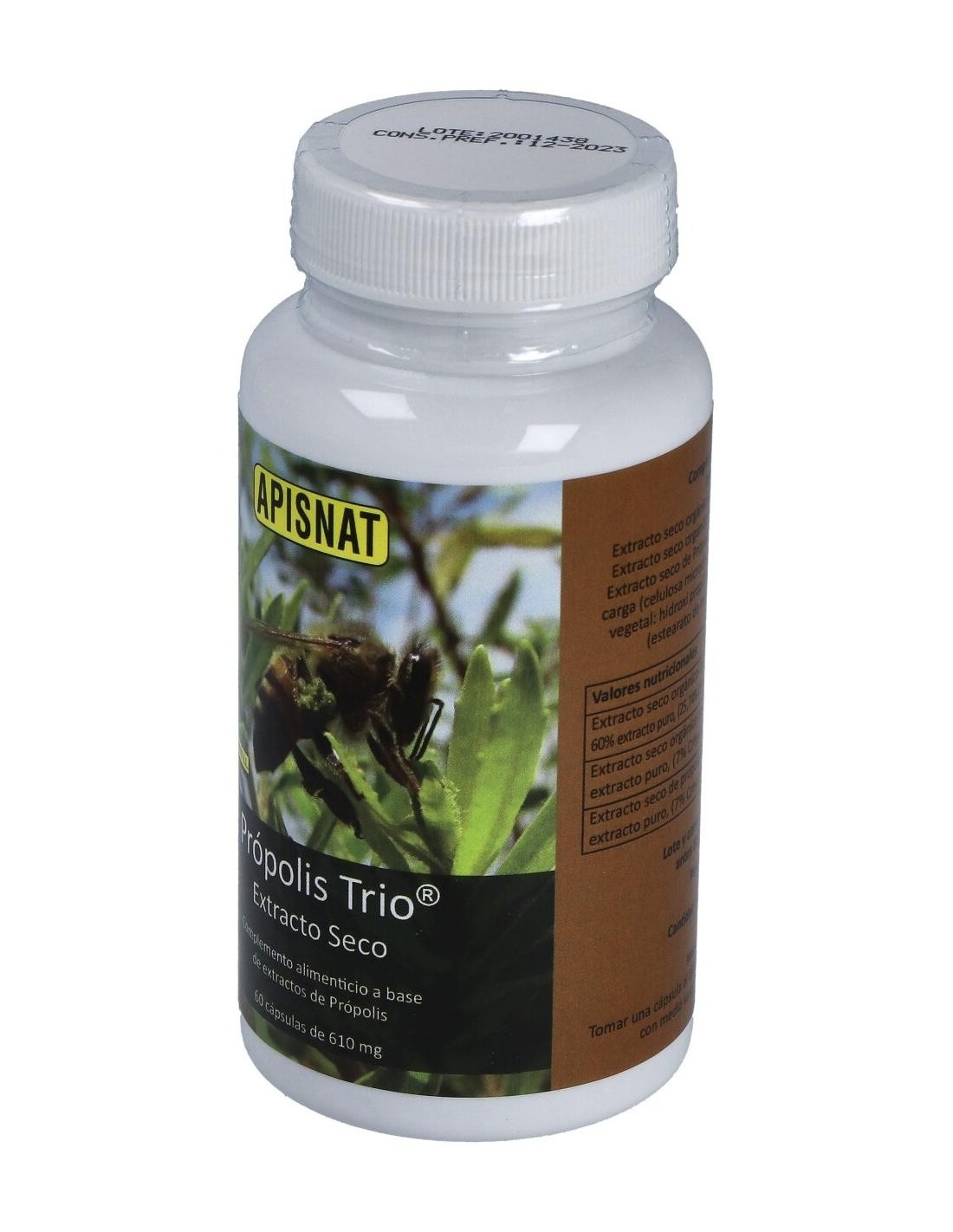 Las cápsulas de Apisnat Propolis Trio están formuladas con extractos de propóleos cuidadosamente seleccionados para mantener sus propiedades naturales. Su diseño permite una dosificación práctica, ideal para quienes buscan un complemento basado en ingredientes derivados de la apicultura.