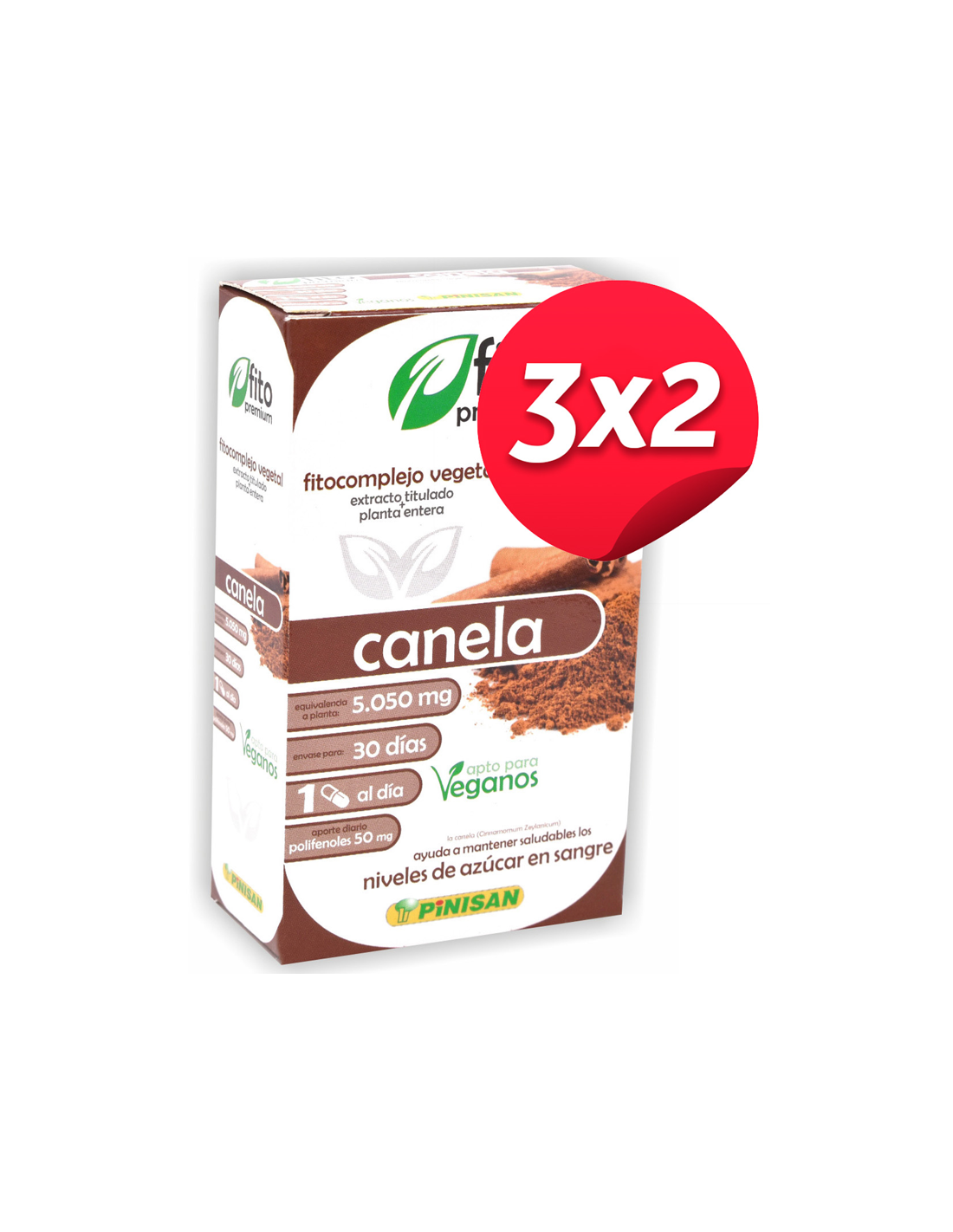 Características y Beneficios del Pack 3x2 Fito Premium Canela, 30 Caps. de Pinisan