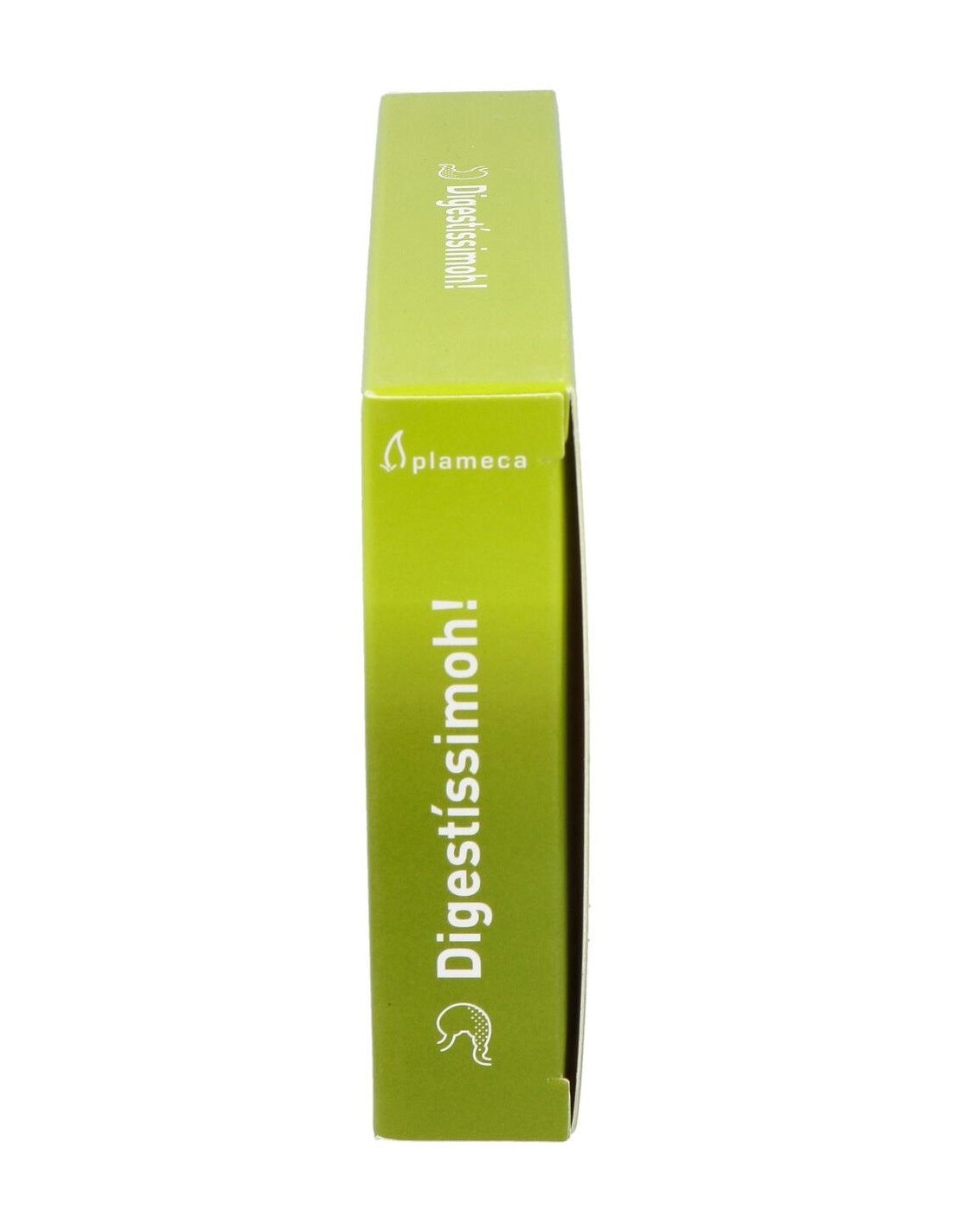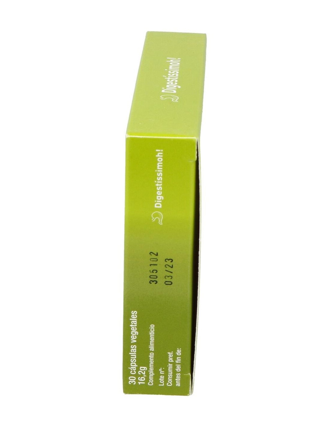 La digestión es el proceso mediante el cual los alimentos y las bebidas se descomponen en sus partes más pequeñas para el organismo pueda usarlos como fuente de energía, y para formar y alimentar las células. Es el pilar de la salud de todo el organismo. No obstante, nuestro estilo de vida actual y factores como el estrés, comer con prisas, mala alimentación (comida rápida, precocinados, etc.), comidas copiosas, el abuso de medicamentos, etc. dificultan la digestión e impiden disfrutar de una buena comida. Los síntomas asociados a la mala digestión afectan a gran cantidad de la poblanción y se caracterizan por ser muy molestos y embarazosos.Digestíssimoh! es un complemento alimenticio que ayuda con las digestiones pesadas y la acidez. Contiene enzimas digestivas, probióticos, plantas medicinales y sales báscicas para proteger todo el tracto intestinal.Composición activa por 2 cápsulas:
