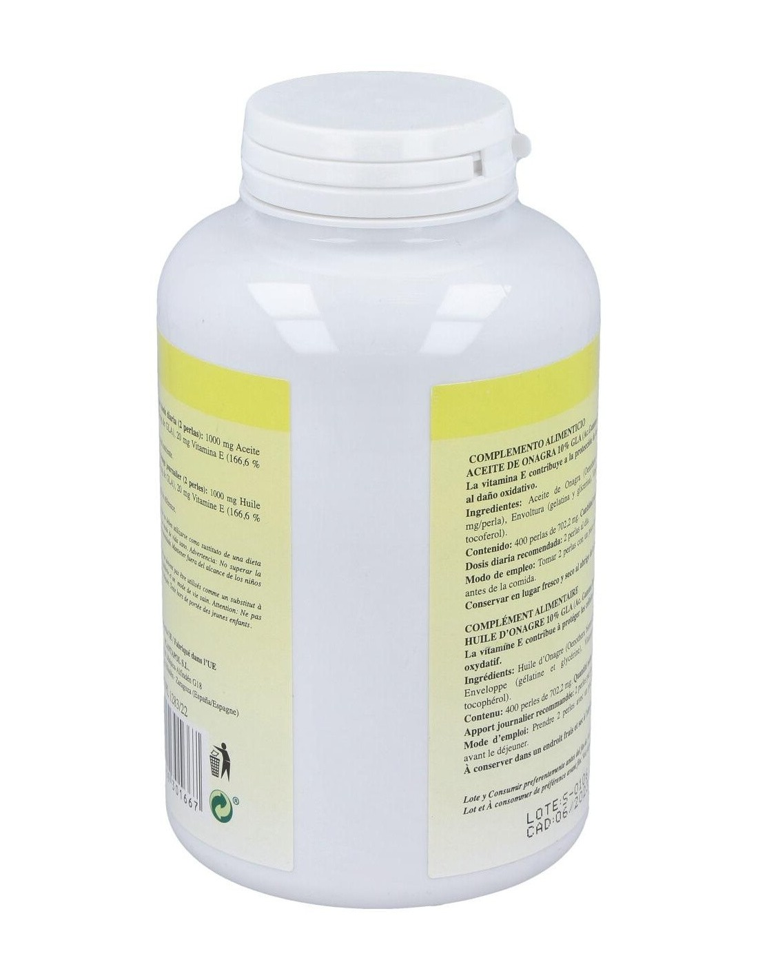 - Cada perla contiene 700 mg de aceite de onagra, proporcionando una dosis constante en cada toma.