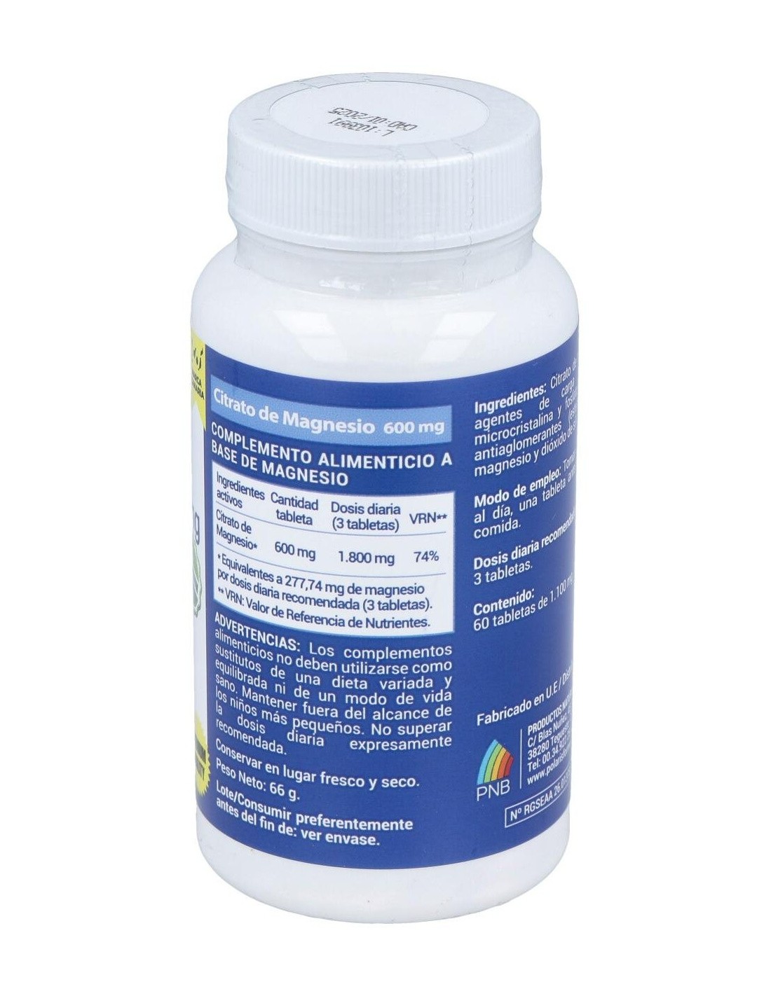 - Cada comprimido contiene 600 mg de magnesio en forma de citrato, una presentación que facilita su absorción.
