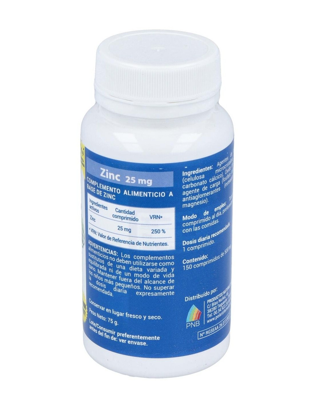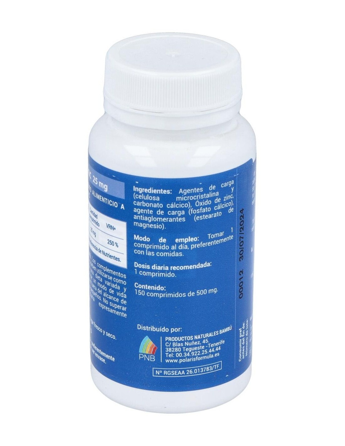 Zinc 25Mg. 150Comp. de Polaris proporciona una forma práctica y constante de incluir zinc en la dieta, apoyando hábitos saludables de manera sencilla.