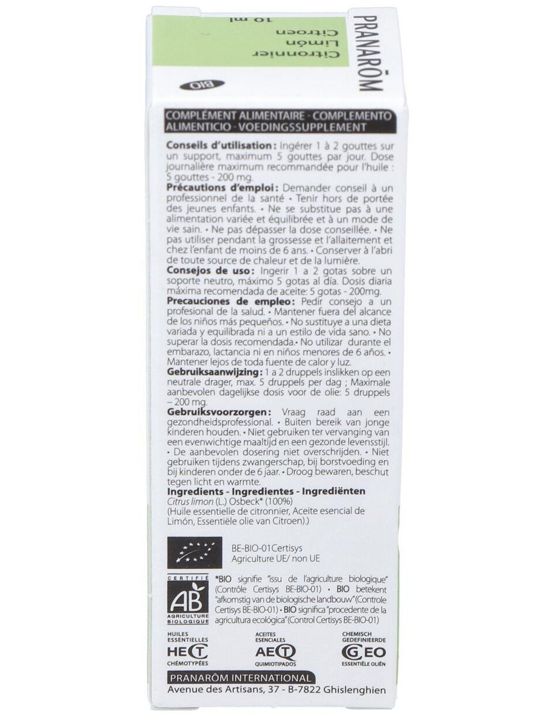 PRANAROM ACEITESAceite esencial de limón 100% puro y natural. Aceite esencial de limón 100% puro y natural.